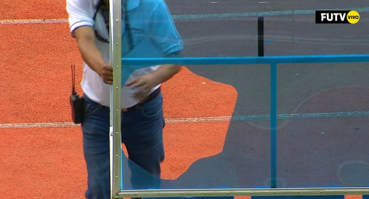 El defensor quebró el protector de uno de los banquillos de la Joya de La Sabana, según reportó FUTV luego del juego.
