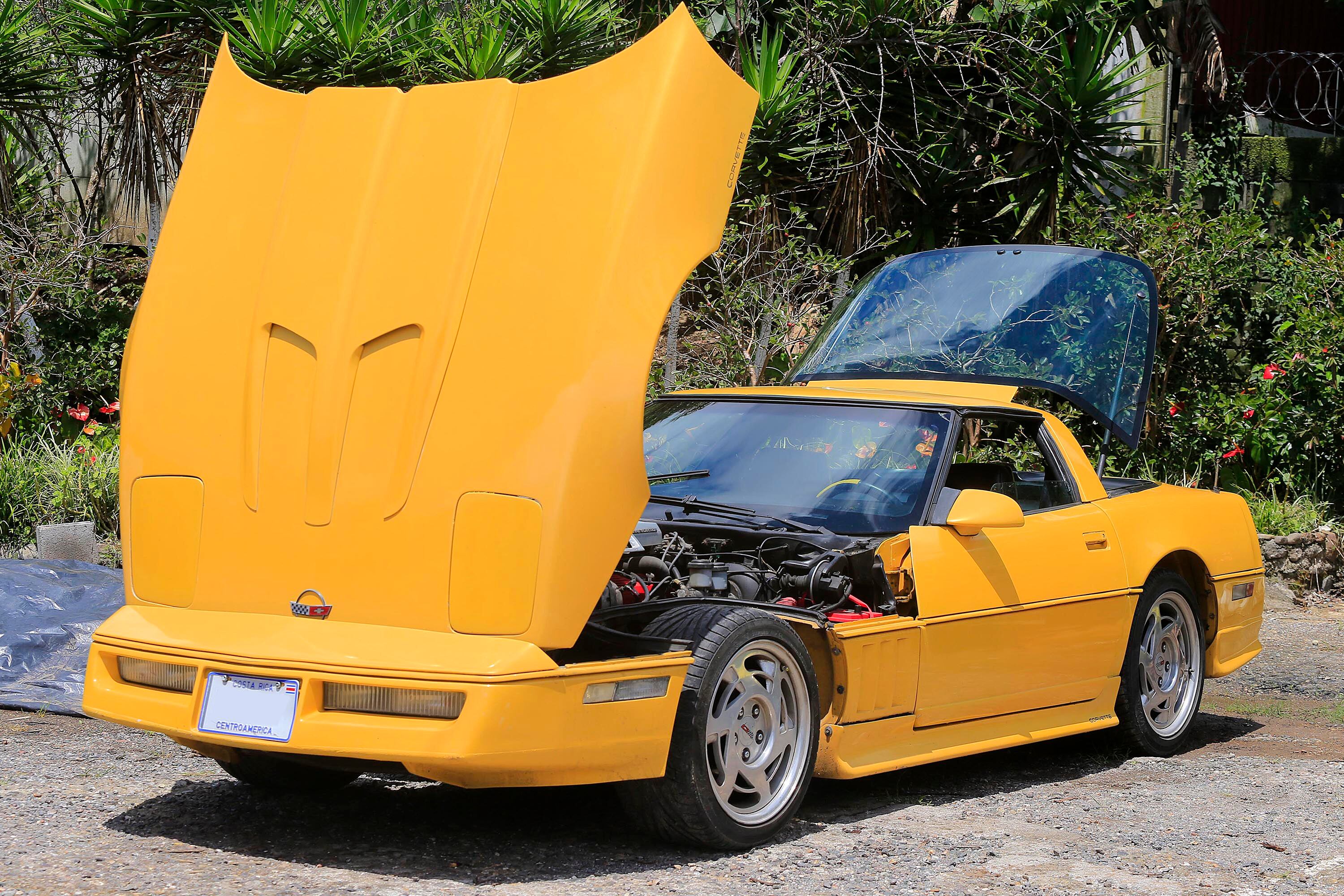 El Corvette C4 es modelo 1984, tiene un motor de 5.800 centímetros cúbicos (c.c.), dos plazas y es totalmente original. Lo compró hace dos años y medio de pura casualidad a otro coleccionista herediano.