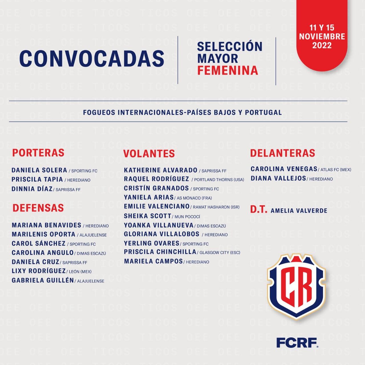 La entrenadora de la Selección Femenina, Amelia Valverde, anunció este viernes la lista con los nombres de las 23 jugadoras convocadas para la doble fecha FIFA de noviembre.