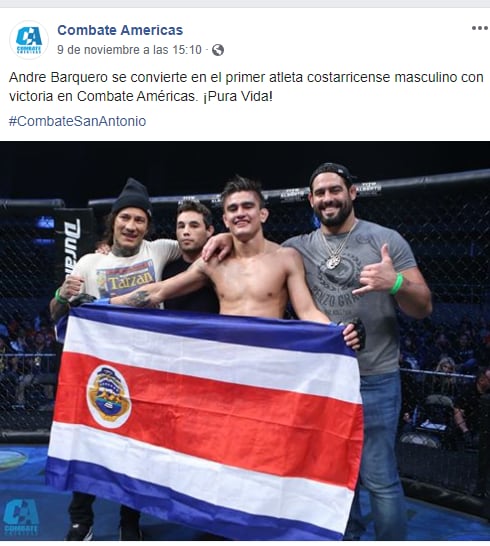 Por eso este brumoso, de 24 años, es el primer hombre costarricense en ganar un combate en la promoción de MMA “Combate Américas”, la liga mas importante de artes marciales mixtas de América Latina, la cual se codea con compañías de renombre como UFC y Bellator.