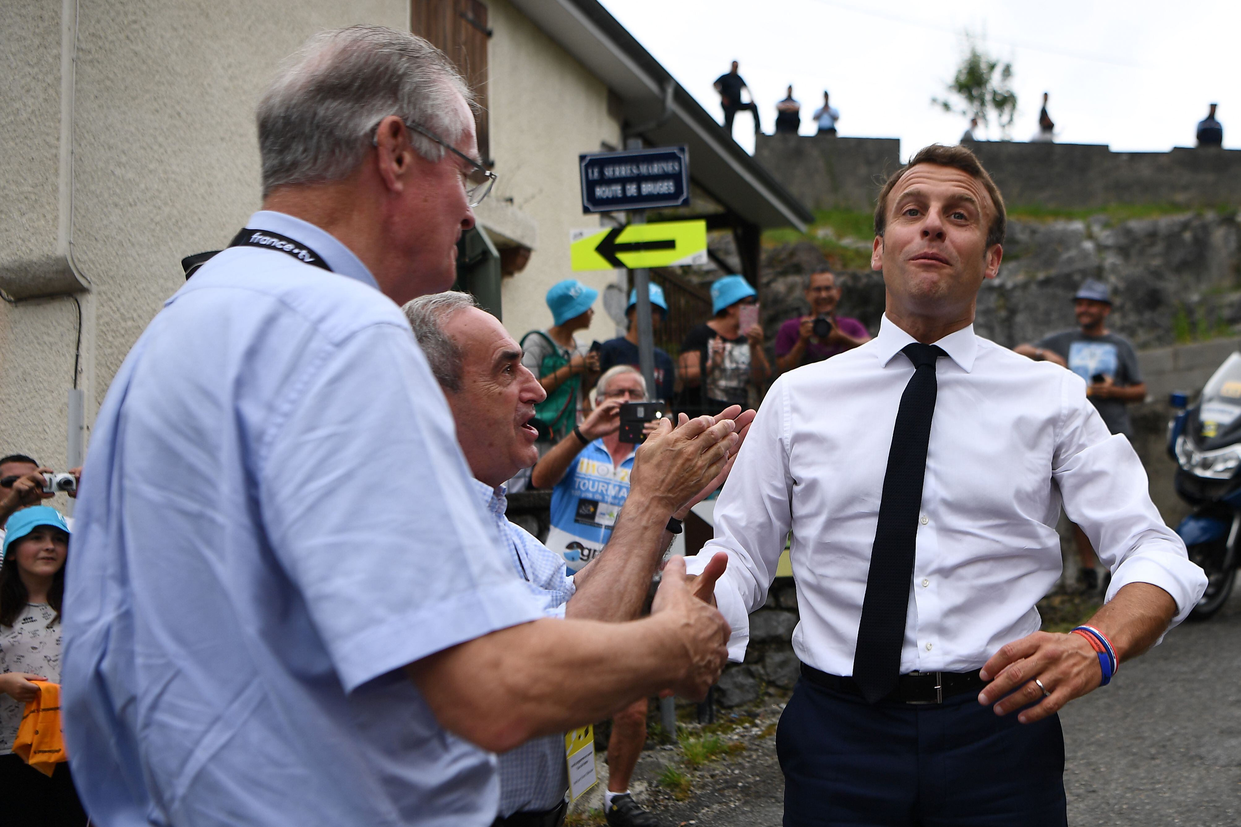 “Espero que rompa la maldición y gane la carrera”, le dijo Macron en la meta a Alaphilippe acerca de los 34 años que han pasado desde que Bernard Hinault fuera el último francés en ganar la ronda gala, logrando en 1985 su quinta corona.