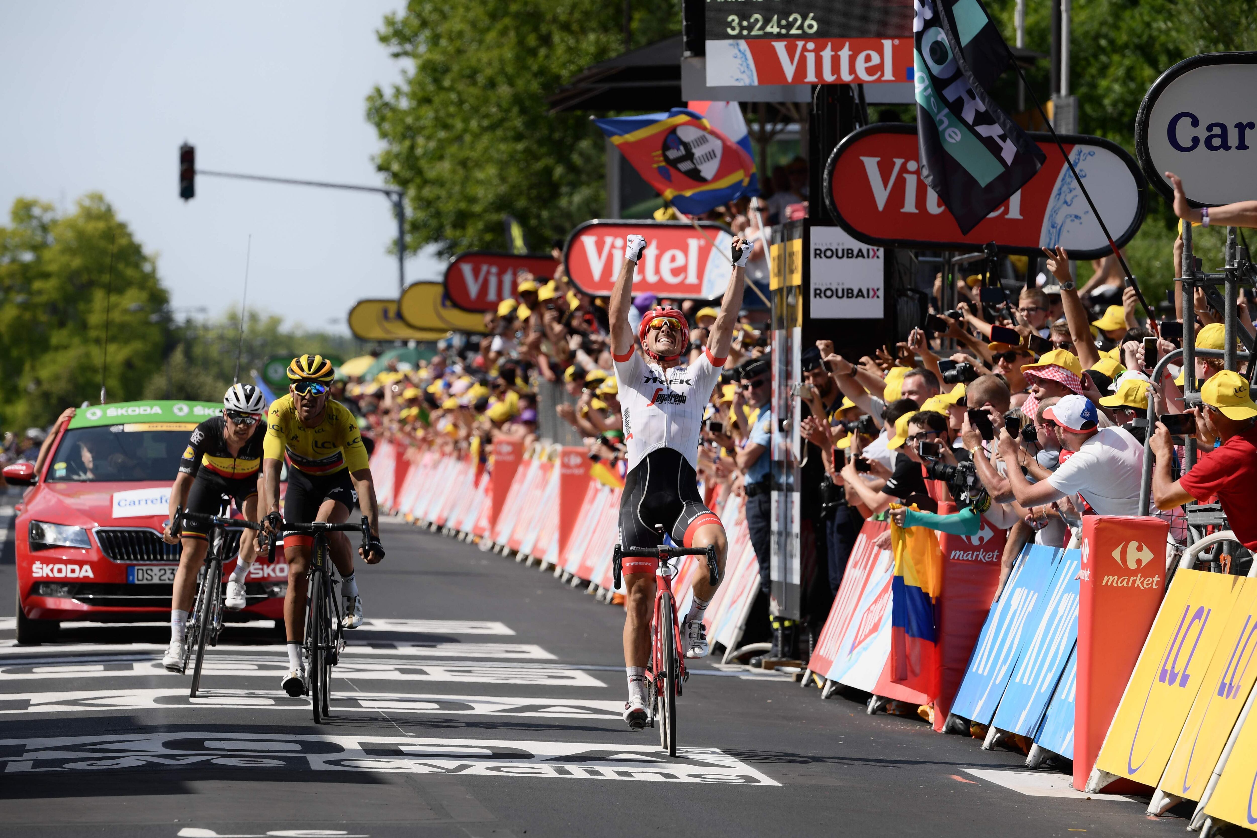 Finalmente, la novena etapa terminó ganándola John Degenkolb (Trek) con tiempo de 3:24:26, seguido con ese mismo registro por el líder general, Greg van Avermaet (BMC) e Yves Lampaert (QuickStep).