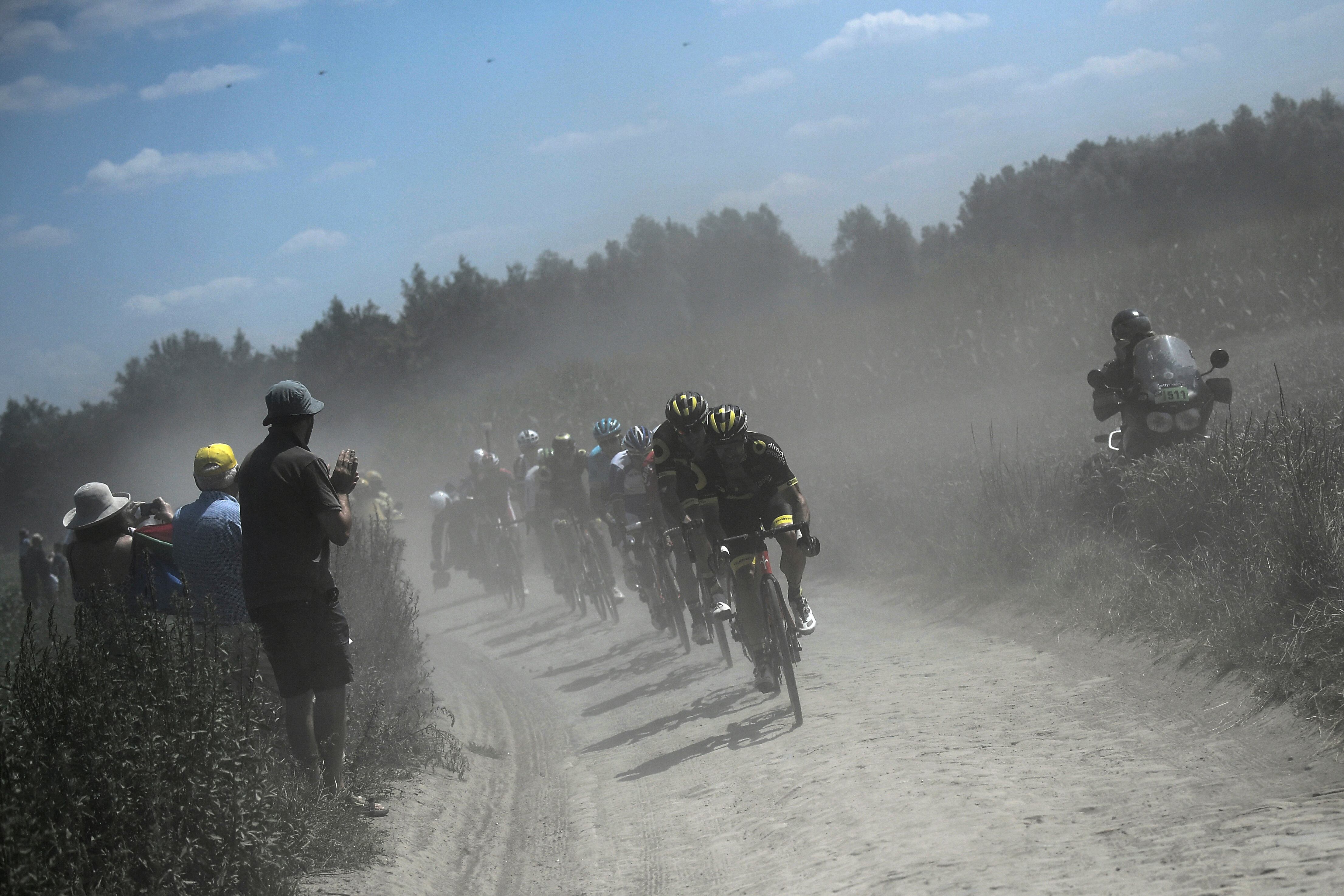 Los tramos donde los pedalistas tuvieron una ruda que pasar sobre los adoquines se convirtieron en una batalla contra la tierra, el y el polvo, sin olvidar del desgastante trayecto para terminar el día.