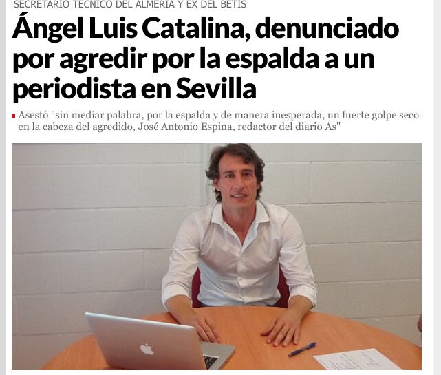 La nota de prensa informó que, según lo que dijeron testigos y constaba en la denuncia, Catalina le dio “un fuerte golpe seco en la cabeza” al redactor del diario As en Sevilla José Antonio Espina.
