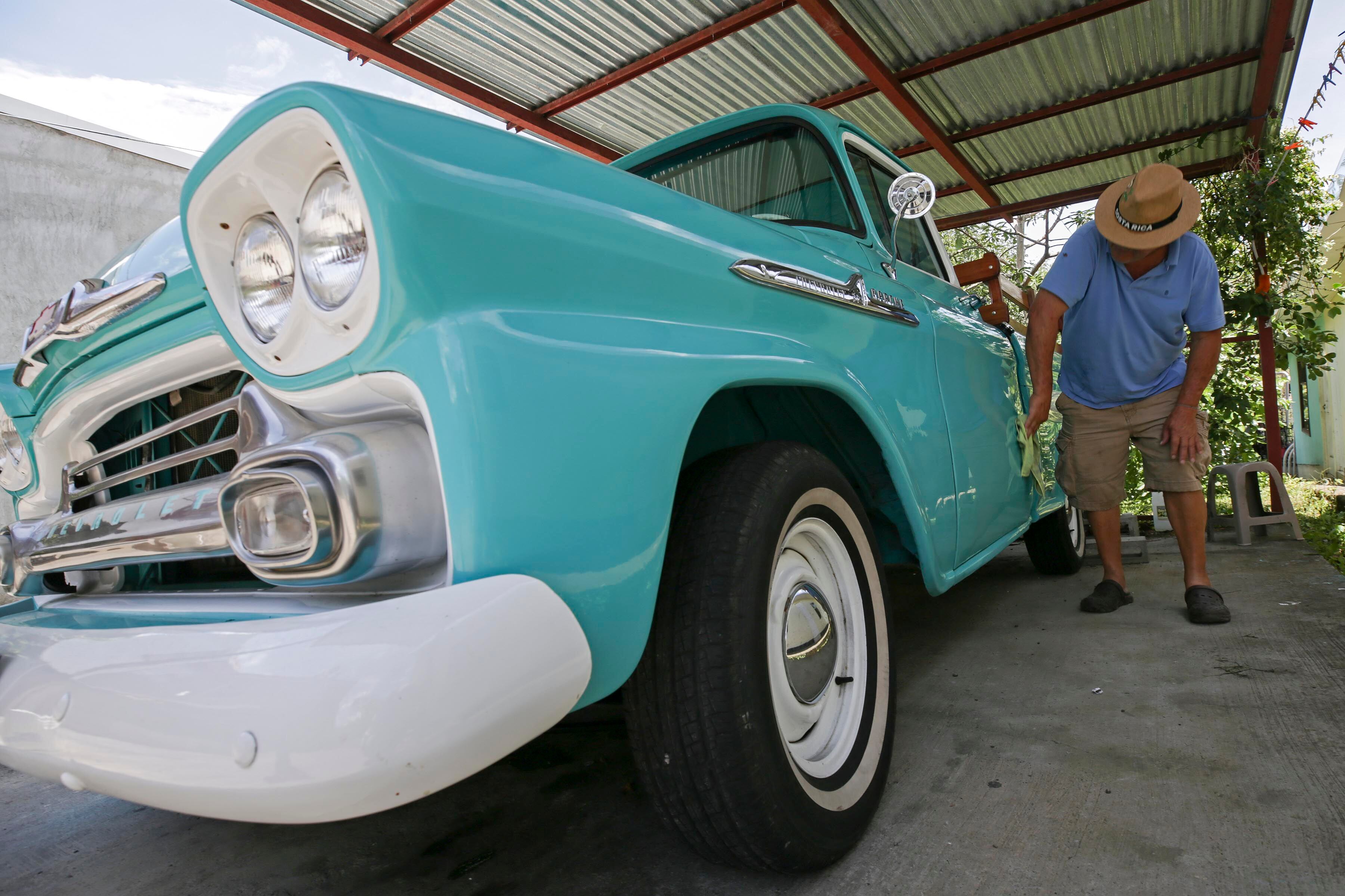 El carrito es de don Alberto Castillo, un Chrevrolet Apache modelo 1958, los cuales son contados con los dedos de la mano que aún recorren el país.