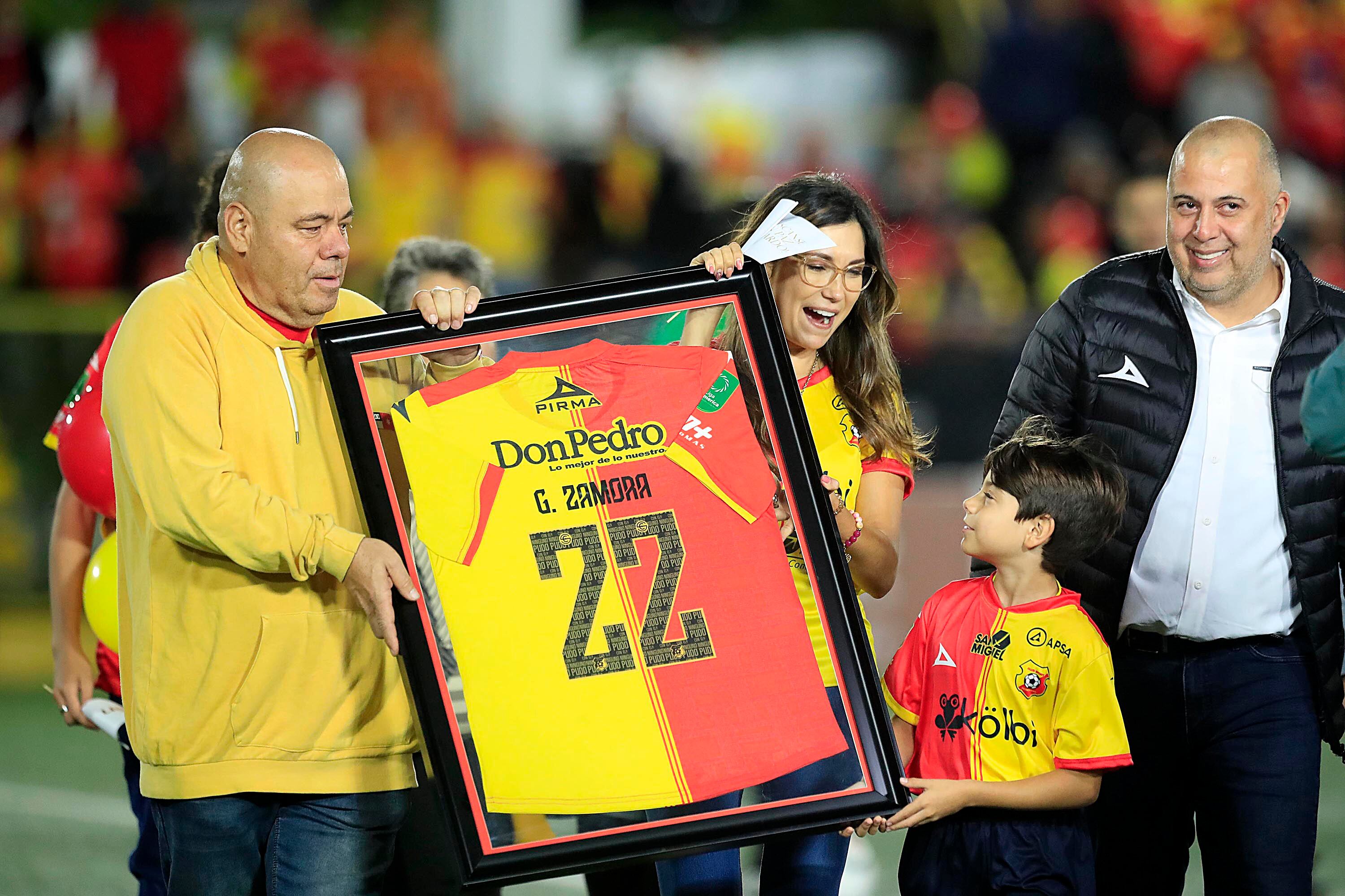 Con lágrimas cayéndole por las mejillas, una mano en el corazón y una sonrisa grande, Ginnés Rodríguez y sus hijos fueron los protagonistas de un sentido homenaje que el Club Sport Herediano rindió a Gerardo Zamora.