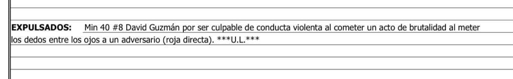 Al ser roja directa, Guzmán se expone a un mínimo de dos partidos de sanción, con lo se perderá el duelo del domingo en Tibás y al primer juego de una posible gran final.