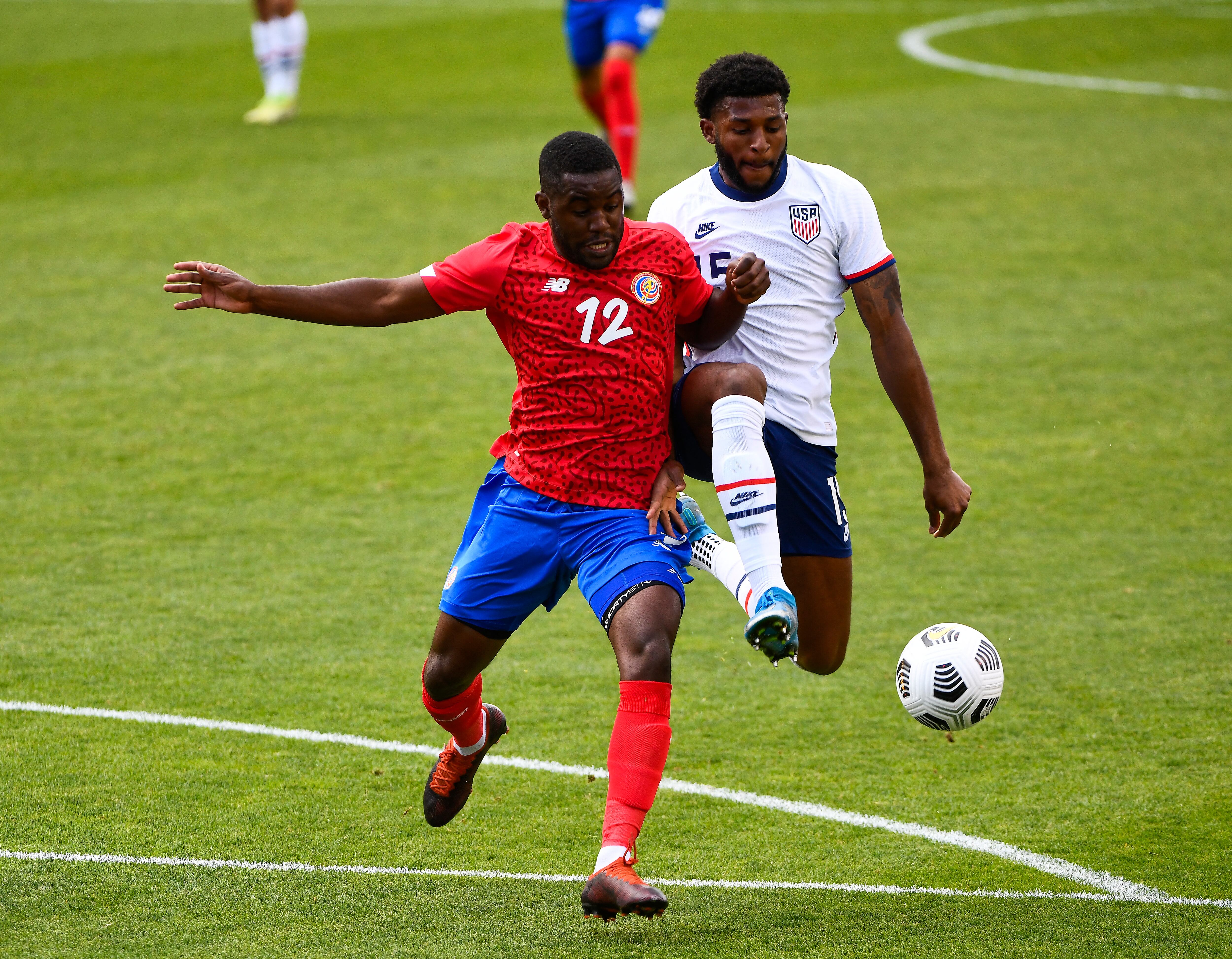 Desde atrás de la línea de media cancha se filtró un baló a la banda izquierda para Antonee Robinson, quien corrió la banda solo, robándole la espalda a Keysher Fuller, la puso al centro del área adonde apareció Brenden Aaronson para definir ante los enredos de la defensa Tricolor.