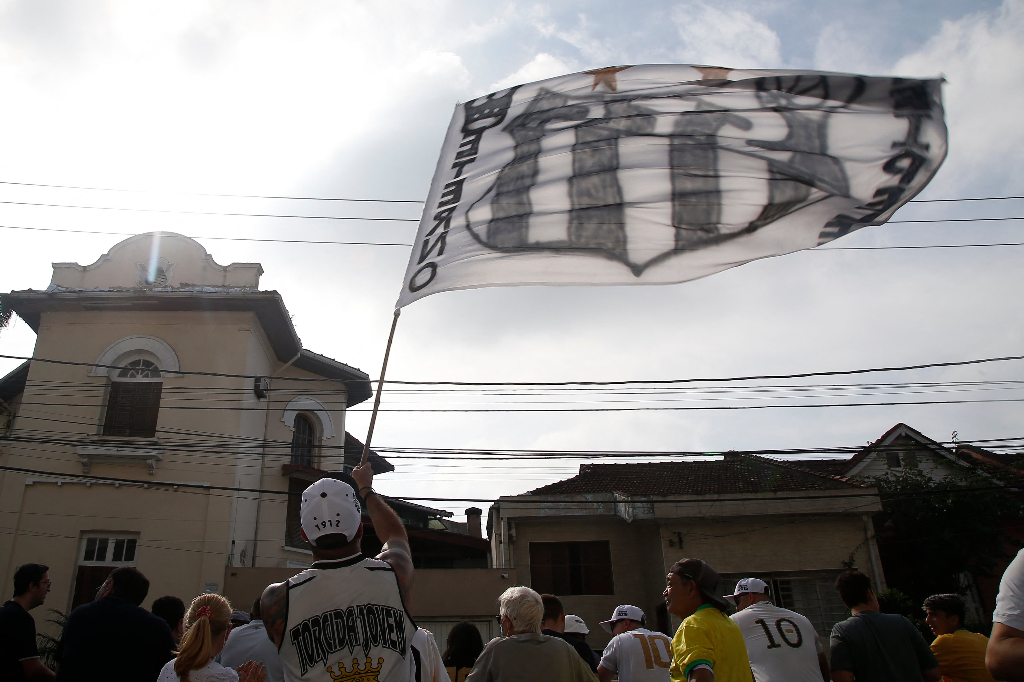 En los alrededores del templo futbolístico se divisan algunas banderas del Santos y de Brasil con franjas o moños negros de luto.