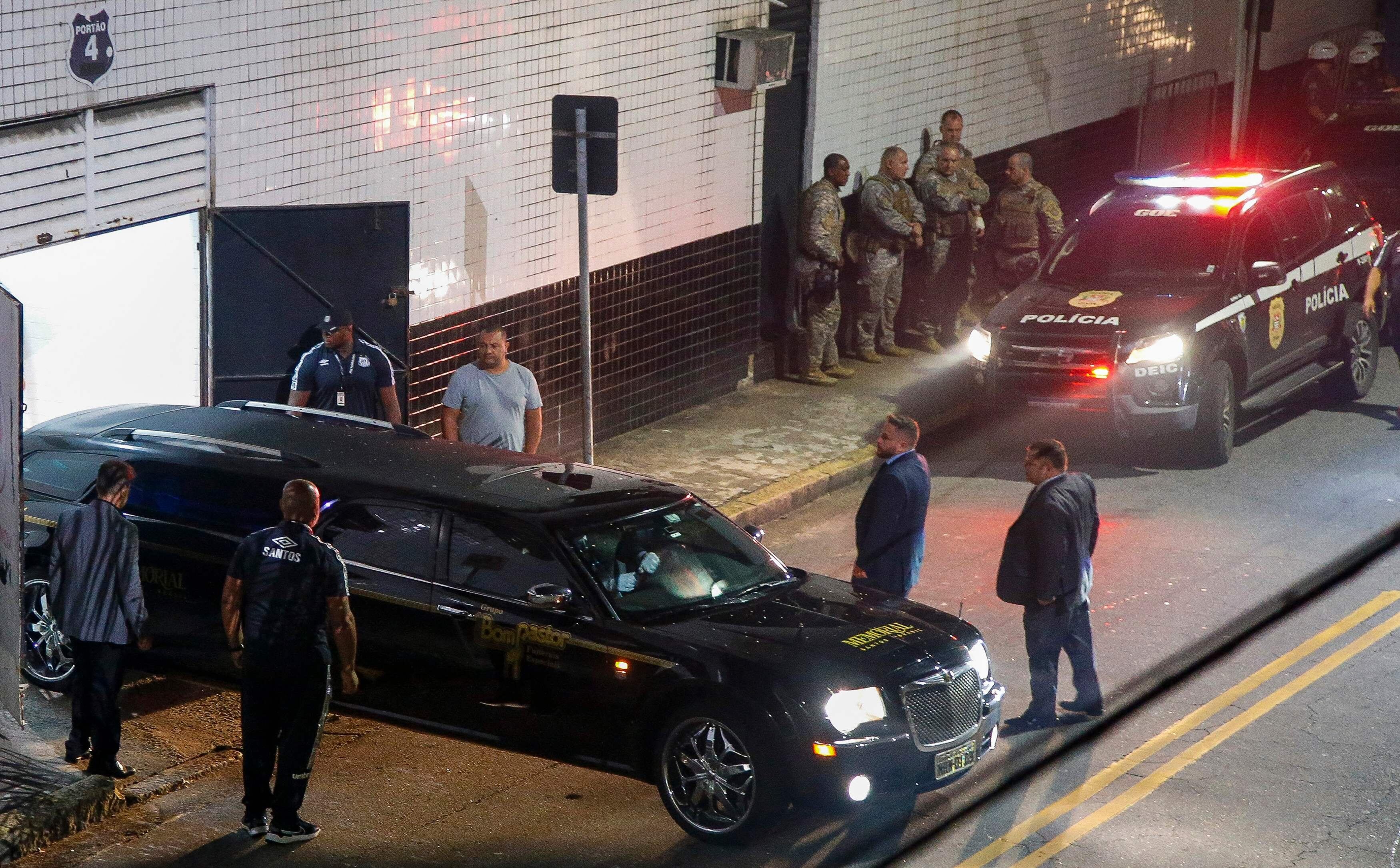Los restos del único jugador en ganar tres mundiales (1958, 1962, 1970) arribaron al lugar alrededor de las 3:40 de la mañan, horas locales, en una caravana salida desde el hospital Albert Einstein de Sao Paulo, donde estuvo internado desde el 29 de noviembre hasta su fallecimiento, un mes después.