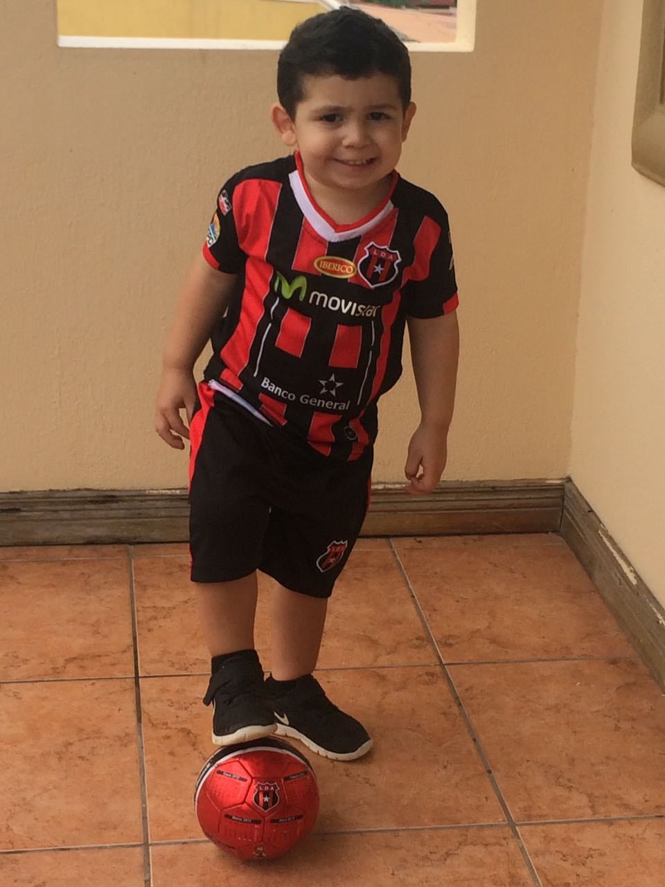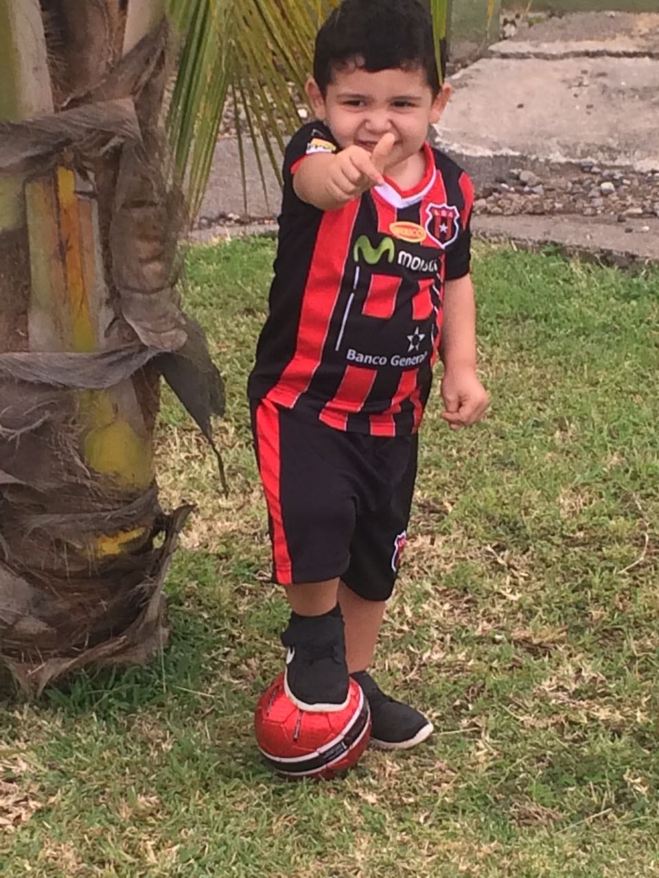 Santiago Alfaro, de dos añitos y once meses, sacude las redes sociales pero sobre todo los corazones manudos por cantar con todas las ganas del mundo el himno de Liga Deportiva Alajuelense.