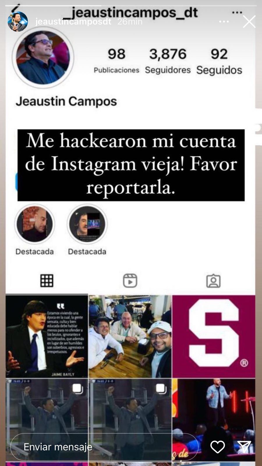 “Me hackearon mi cuenta de Instagram vieja. Favor reportarla”, escribió Jeaustin.