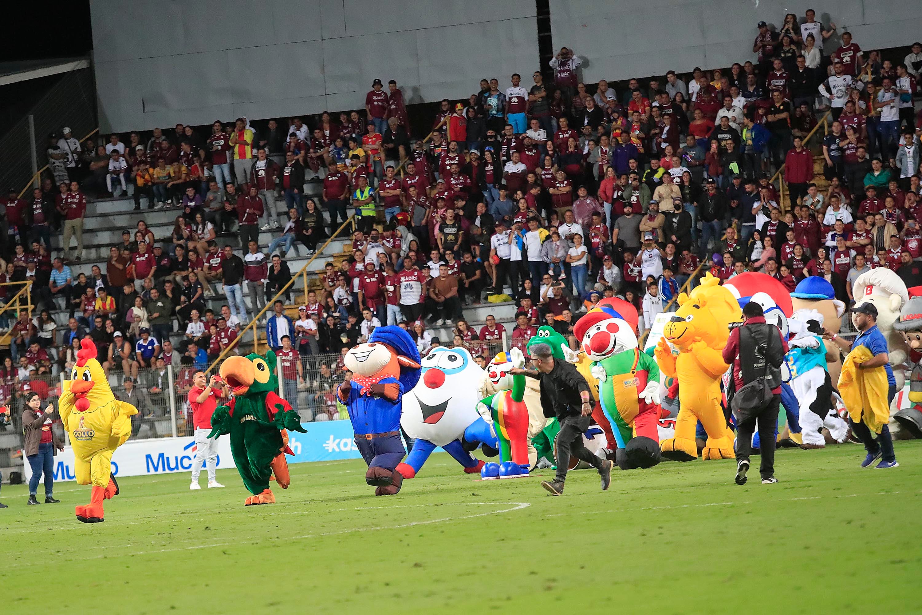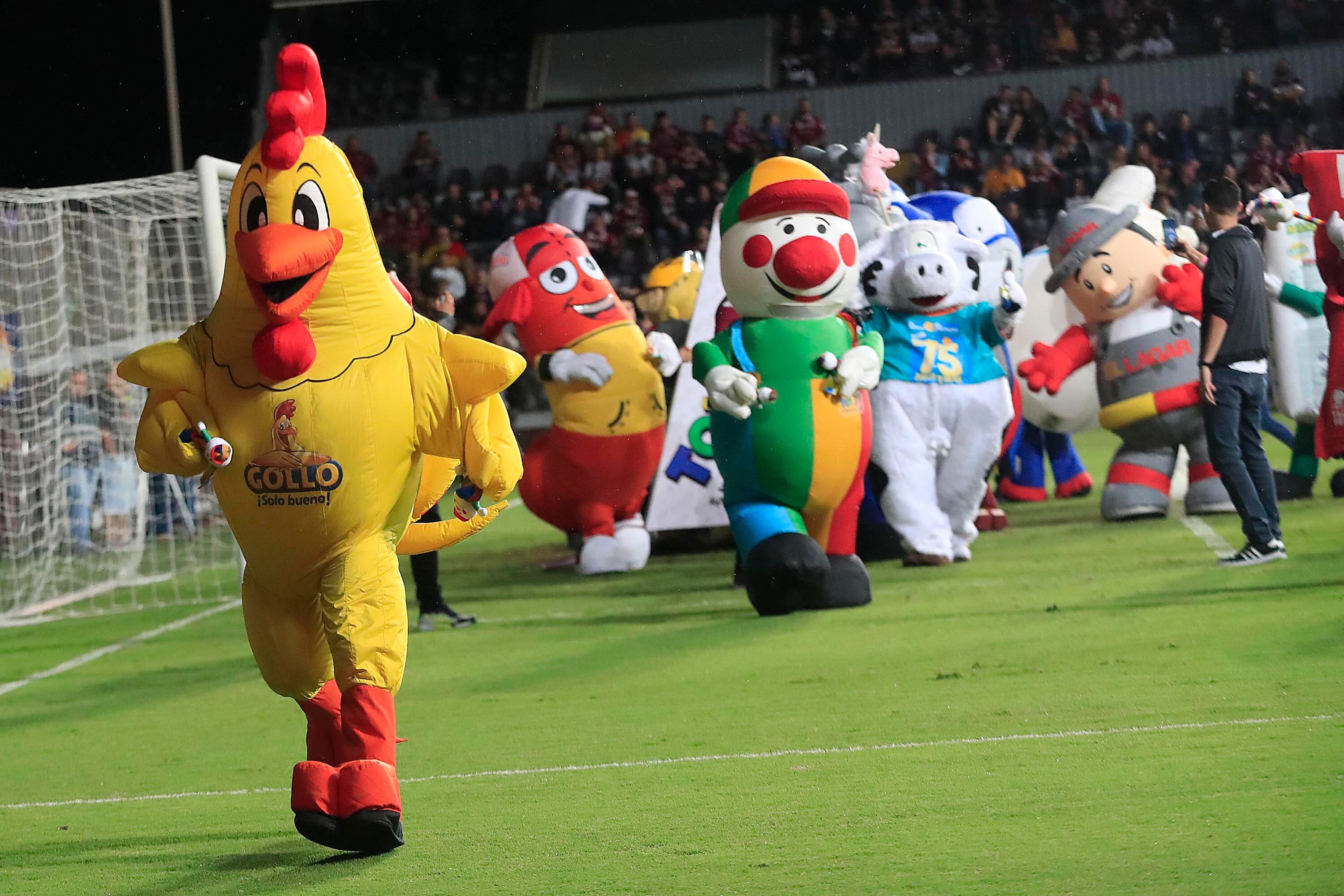 La salida se dio en el marco norte y desde antes de que finalizara el primer tiempo, las botargas estaban ansiosas por salir a la grama.