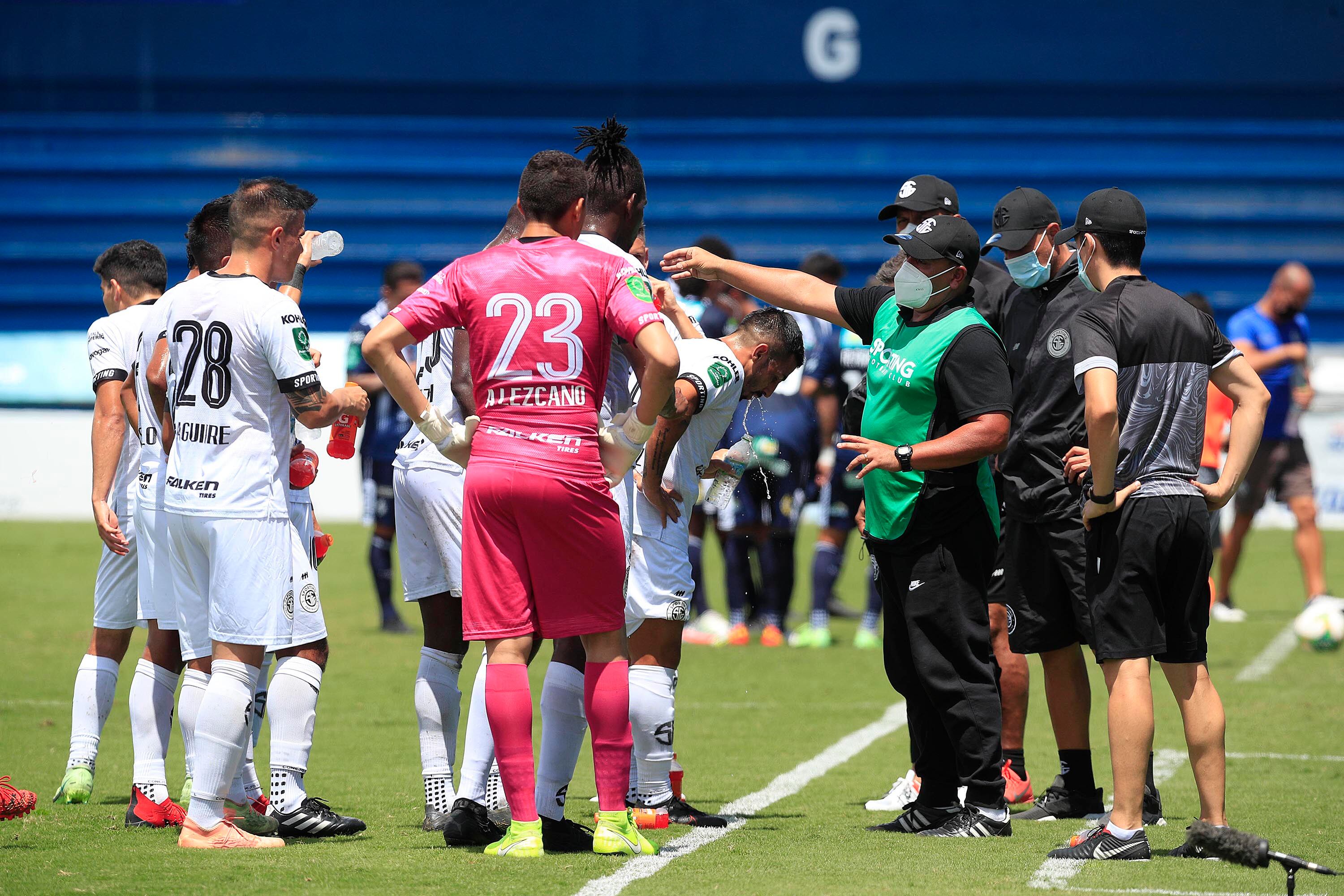 Sporting respondió con un cabezazo de Hernán Fener que Briceño voló para llevarse de gran manera al 81 y un minuto después los azules volvieron a perdonar con una que Andy Reyes no se tuvo la confianza para definir cerca del punto de penal y se la mandó muy obligada al Cusuco.