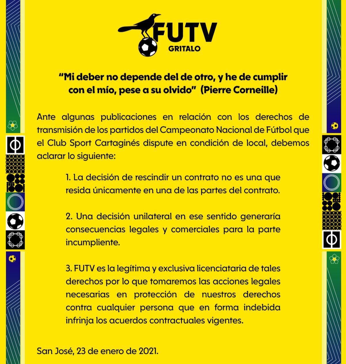 El rumor de una ruptura entre el Cartaginés y Futv generó más expectativa que la mejenga entre Cartago y Limón, el saber qué pasaría si el canal amarillo llegaba al Fello Meza, ver quién trasmitiría el partido y cómo sería la transmisión prometía más que el juego.