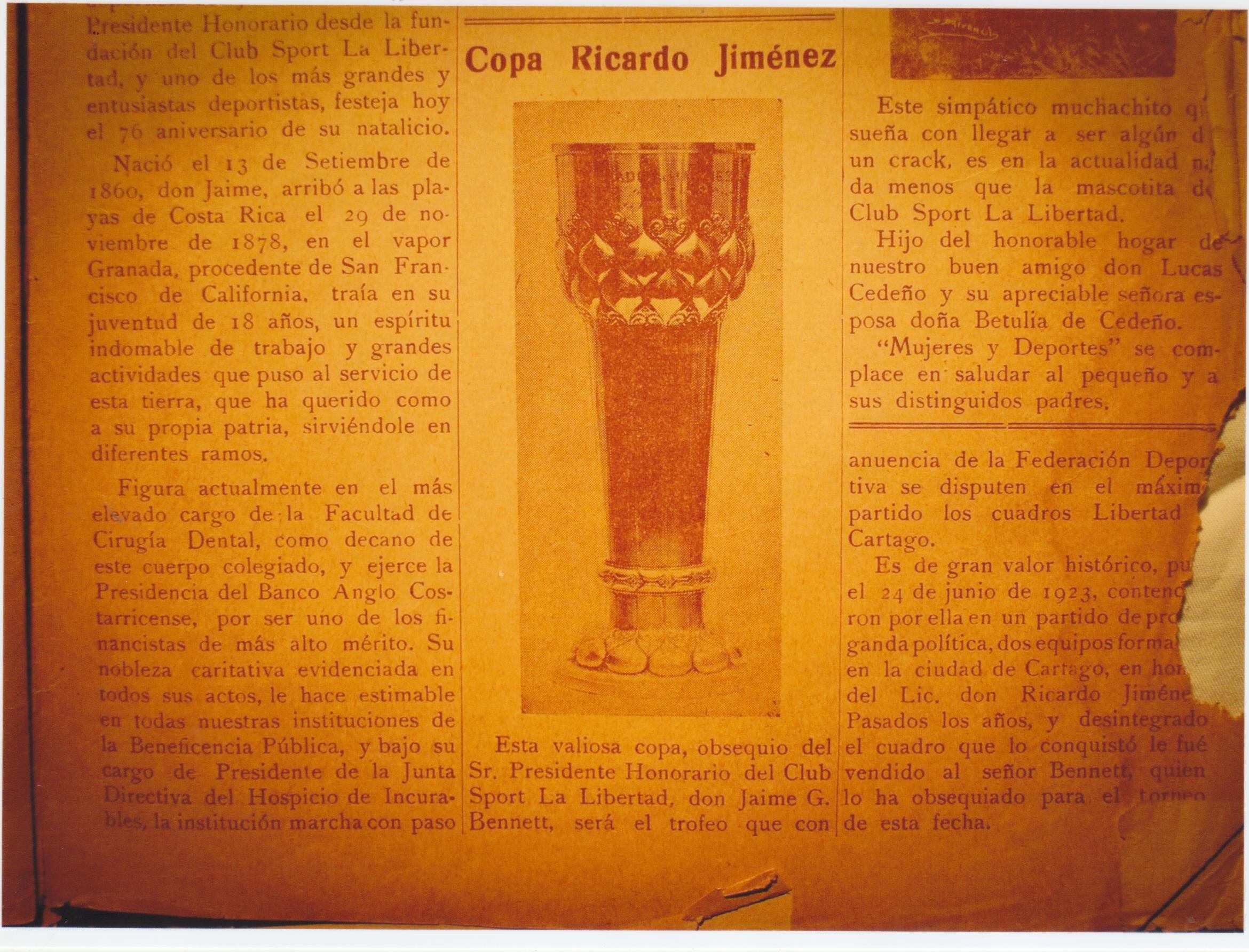 “Este trofeo se dio en forma condicionada, solo podría considerarse su propietario al equipo que lo obtuviera en tres ocasiones. El Club Sport Herediano se lo dejó al conseguir el campeonato de 1924, uniéndose a los logrados en 1921 y 1922, mientras que en 1923 lo hizo el Club Sport Cartaginés”, explicó Adrián Escalante, experto en la historia de los trofeos florenses.