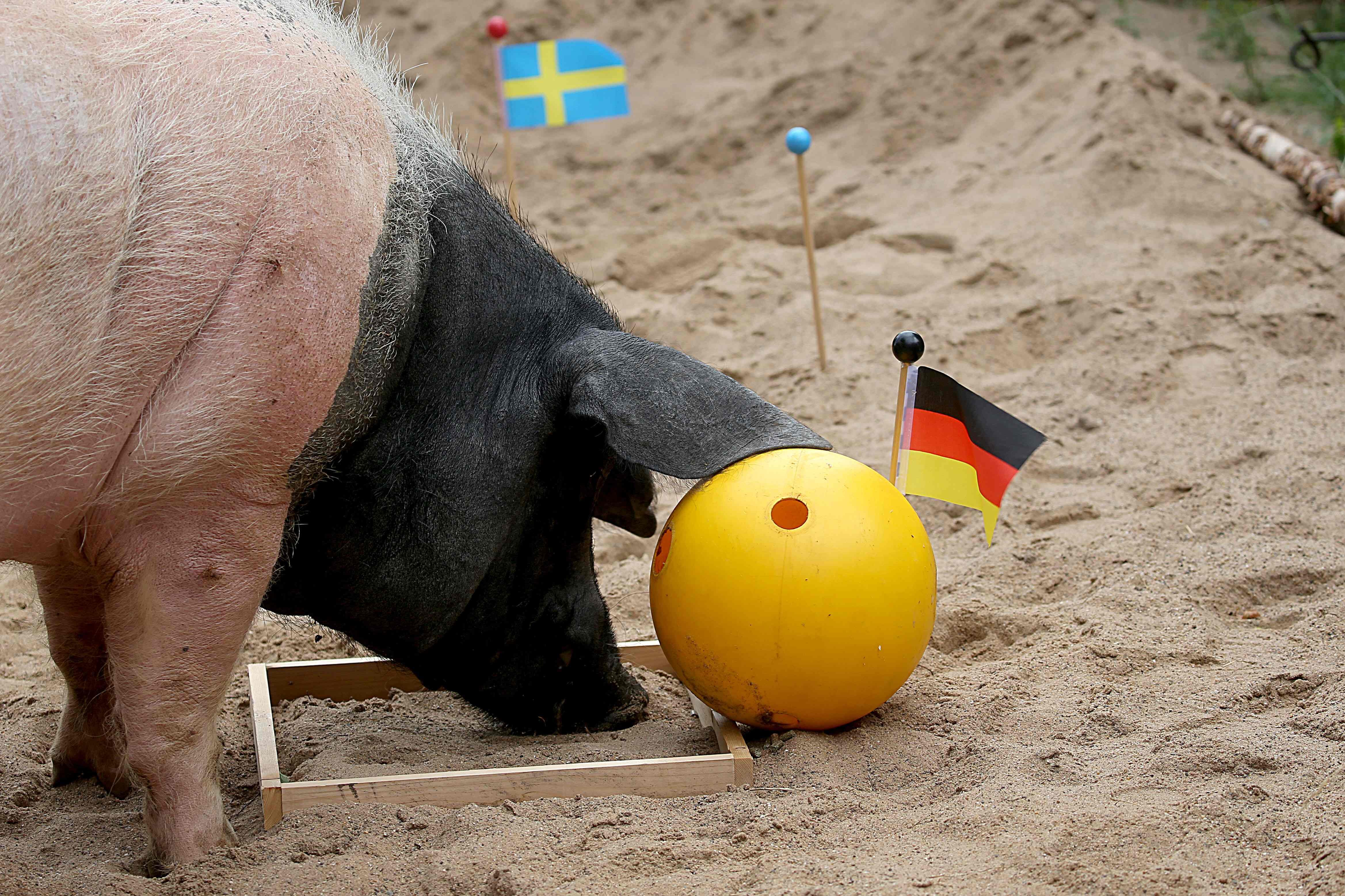 Ahora es el turno del chancho Eberhard, conocido también como Harry, que adelanta desde Colonia que la mejenga entre Alemania y Suecia será ganada por los germanos, campeones en Brasil 2014.