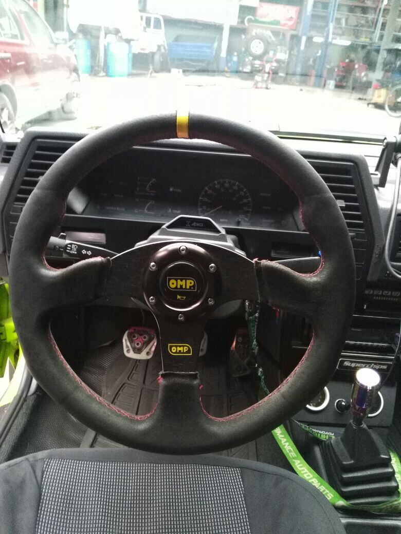 –Aproximadamente le he invertido como millón y medio de colones en extras, las cuales puedo recordar de momento, un volante de competencia desmontable marca OMP, frenos de disco traseros, materiales de pintura, aros de lujo 15x8 y toda la iluminación en led.