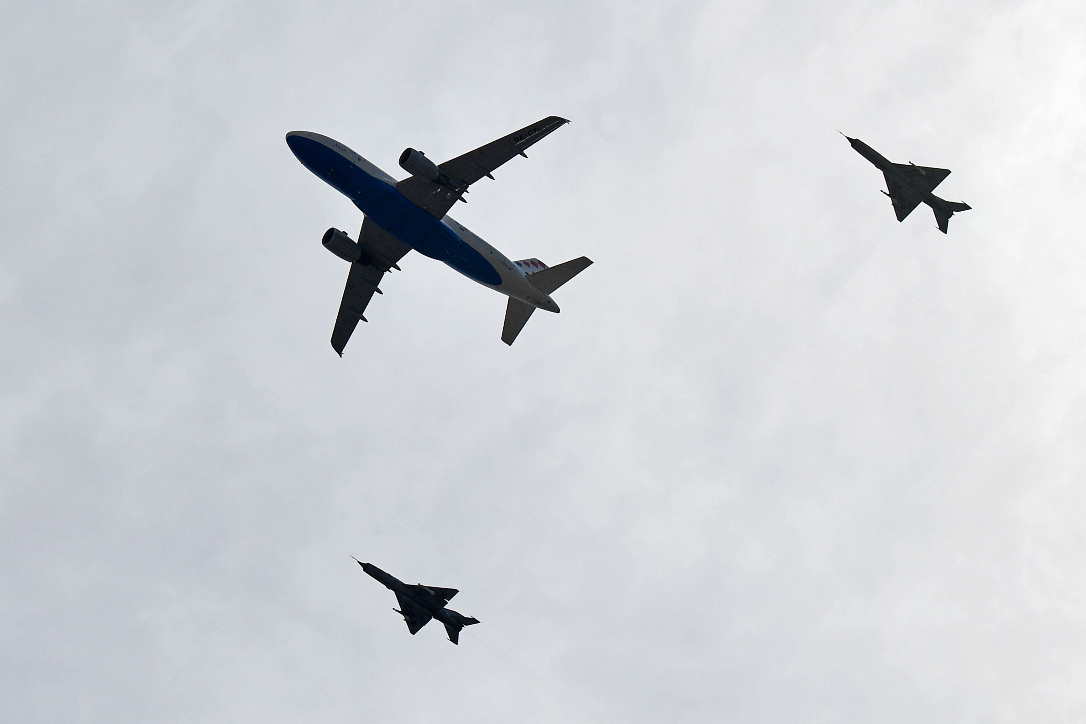 La aeronave, proveniente de Moscú, fue acompañada por dos aviones caza de la fuerza aérea croata a partir de su ingreso al espacio aéreo del país cuyas costas baña el mar Adriático.