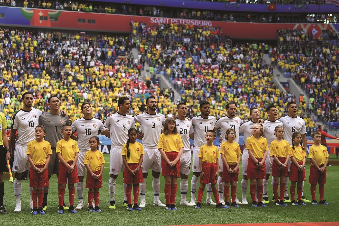 Entraron a la cancha donde jugarían Brasil y Costa Rica, gracias al programa Player Escort de McDonald's, luego entonaron con orgullo el Himno Nacional de Costa Rica.