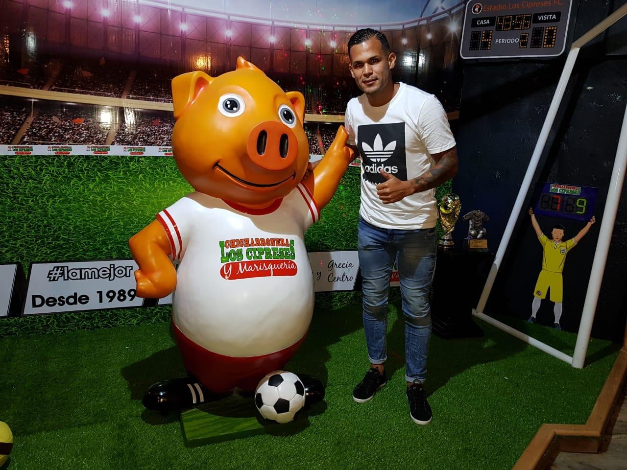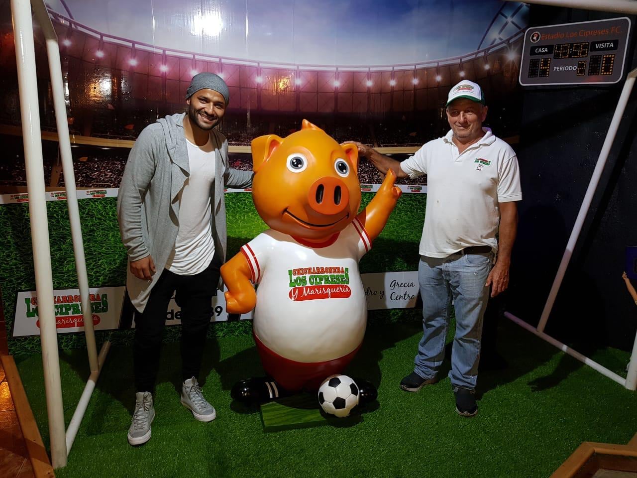 Gracias a sus 15 años en las canchas, Ever tiene en el local de Santa Gertrudis las camisetas de todos los equipos en los que jugó y, de hecho, hace unos cinco meses pagaron a hacer un cerdo grande que sostiene un balón de fútbol para hacer más clara la mezcla de dos de sus pasiones.