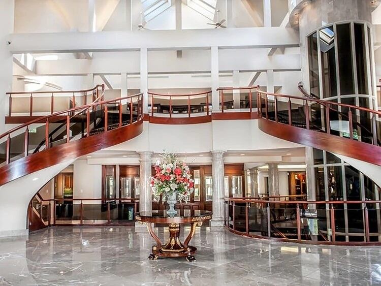 Pisos de mármol, una entrada principal deslumbrante y una estatua de un león a metros de ella, son algunos de los detalles que hicieron de mansión una de las más lujosas. También tiene canchas de básquet y piscinas tanto al aire libre como cubiertas.