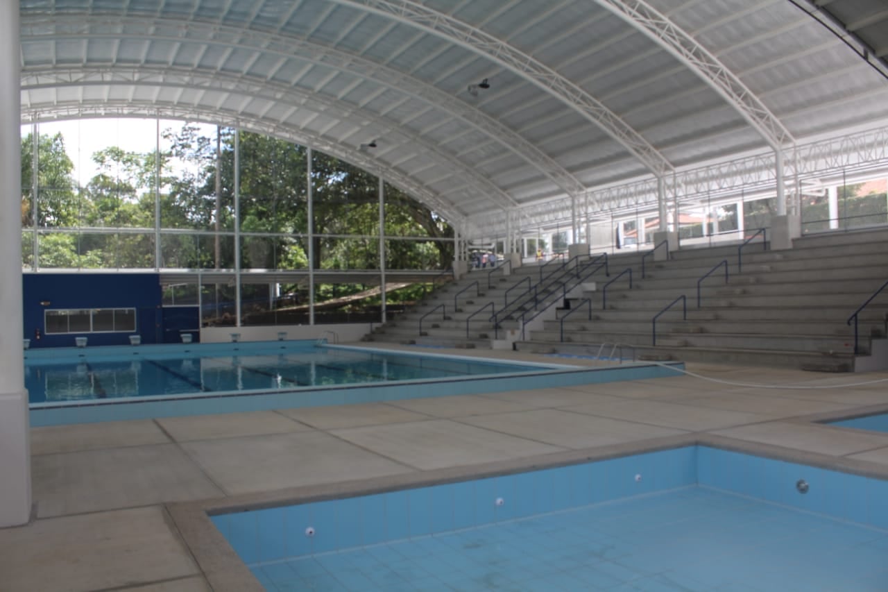Estas instalaciones cuentan con una piscina semiolímpica de ocho carriles bajo techo y temperada, con una gradería para 500 personas. Además de otras dos piscinas especiales para el trabajo de estimulación temprana en los niños y para adultos mayores.