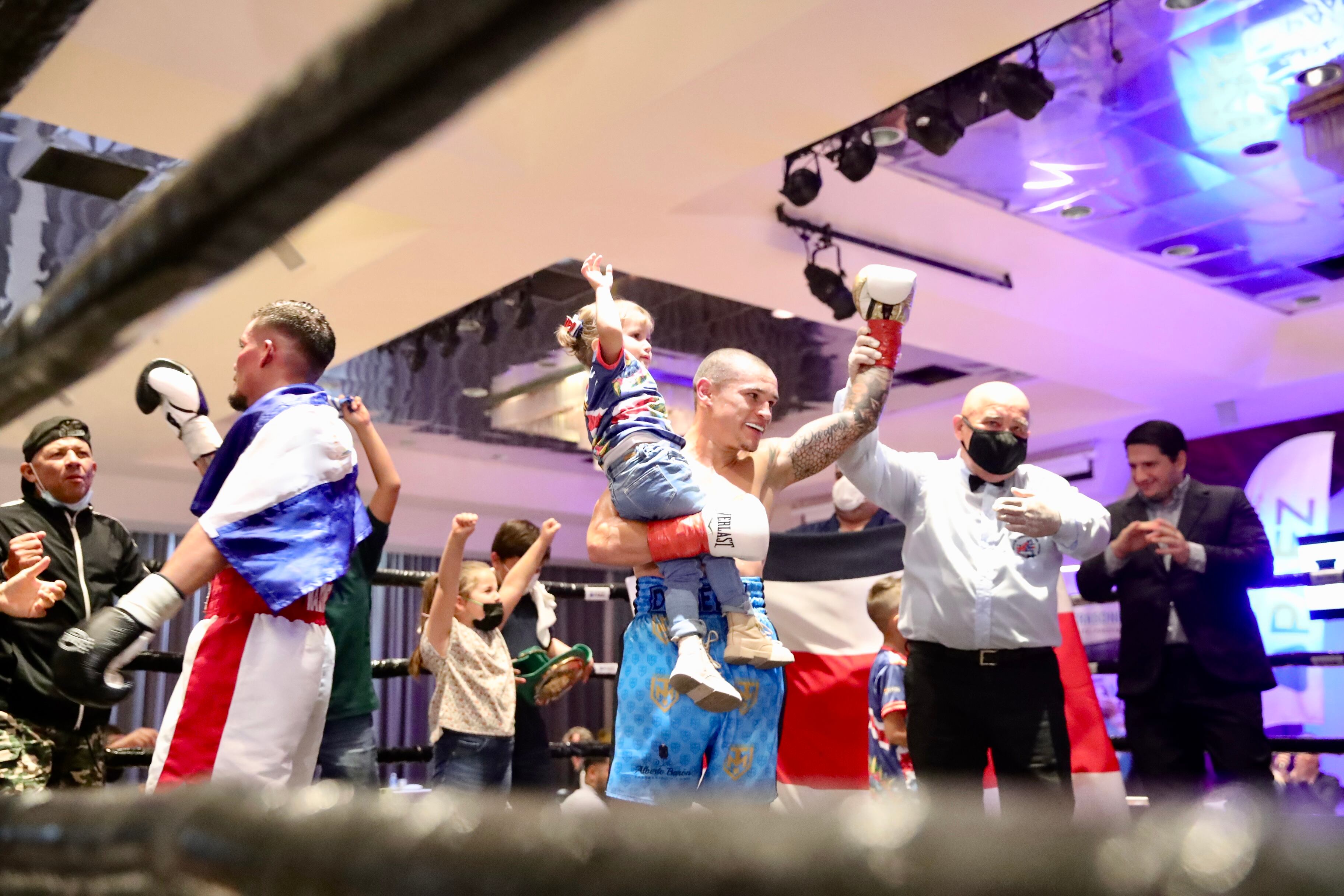 Para el quinto round, el cartaginés se adueñó del combate, ya le salió con todo a Martínez y lo tiró dos veces a la lona, lo que fue suficiente para que el réferi parara la pelea y le diera el triunfo para el gozo de todos los presentes en el Hotel Barceló, en San José.