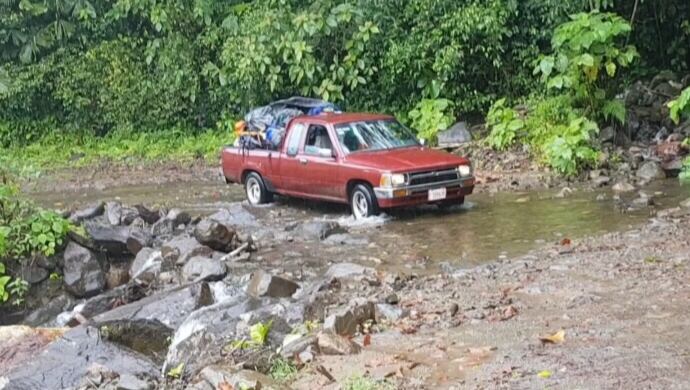 Ah sí, claro. Una vez andaba por Aserrí y estaba por una calle bastante rural, angosta, inclinada y él fue y vino sin problemas, pude entrar tranquilo, con otro tipo de carro no hubiera entrado. Él no es 4x4, pero las dos llantas de atrás tienen tracción, entonces eso ayuda mucho en ese sentido y por la fuerza que tiene entra bien. Tiene motor de gasolina de 2400cc carburado.