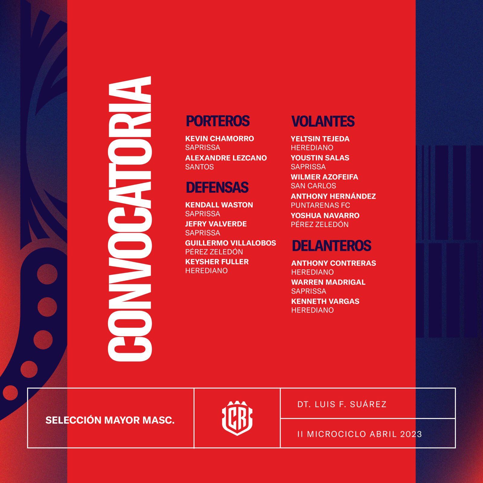 Luis Fernando Suárez, técnico de la Selección de Costa Rica, convocó a 14 jugadores para un microciclo de entrenamientos que realizará la próxima semana, a partir del lunes.