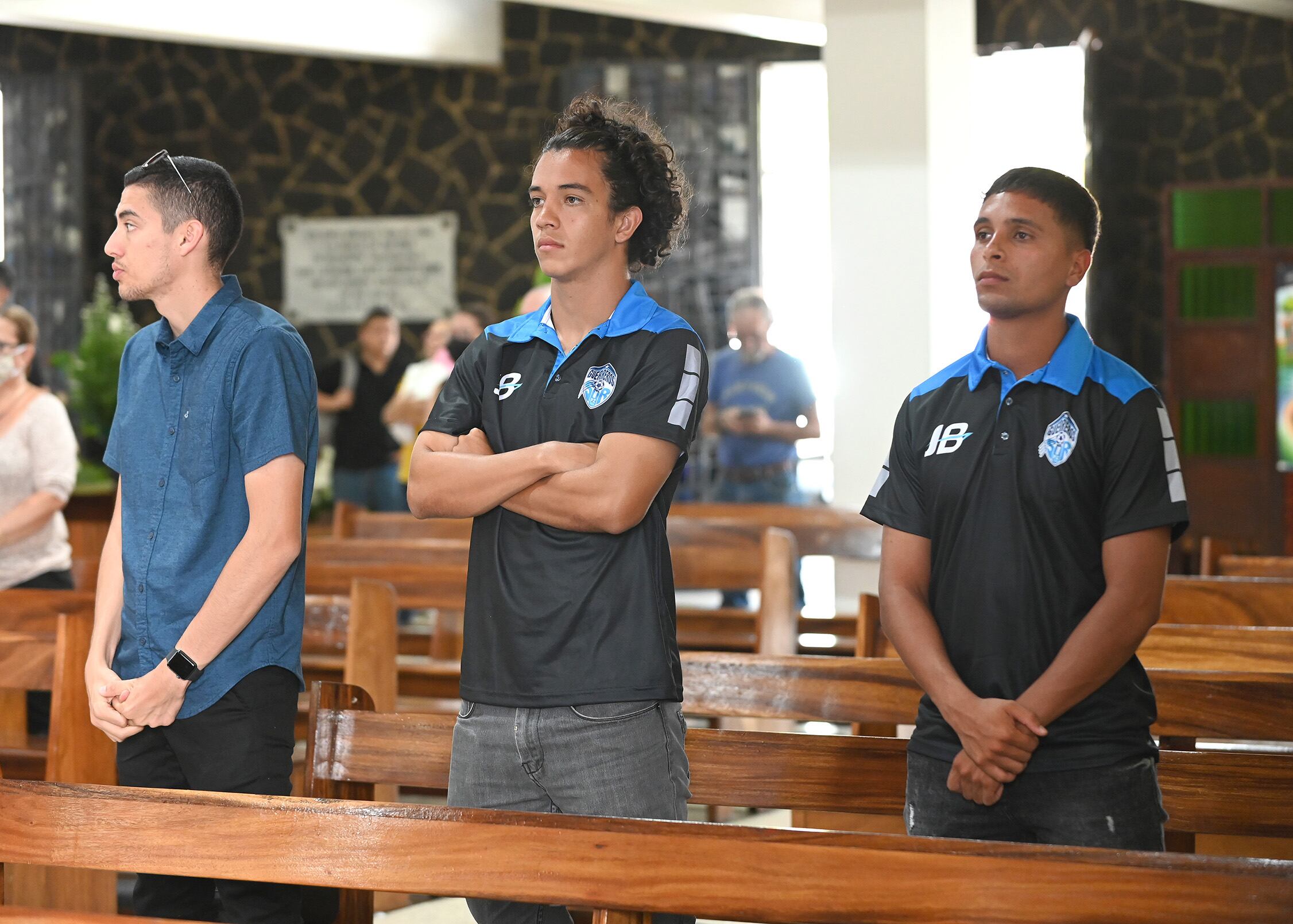 Sebastián Monge y Joshua Parra llegaron a la iglesia de Don Bosco en el puro centro de la capital acompañados de una delegación del equipo que además llegó con un arreglo florar para el técnico.