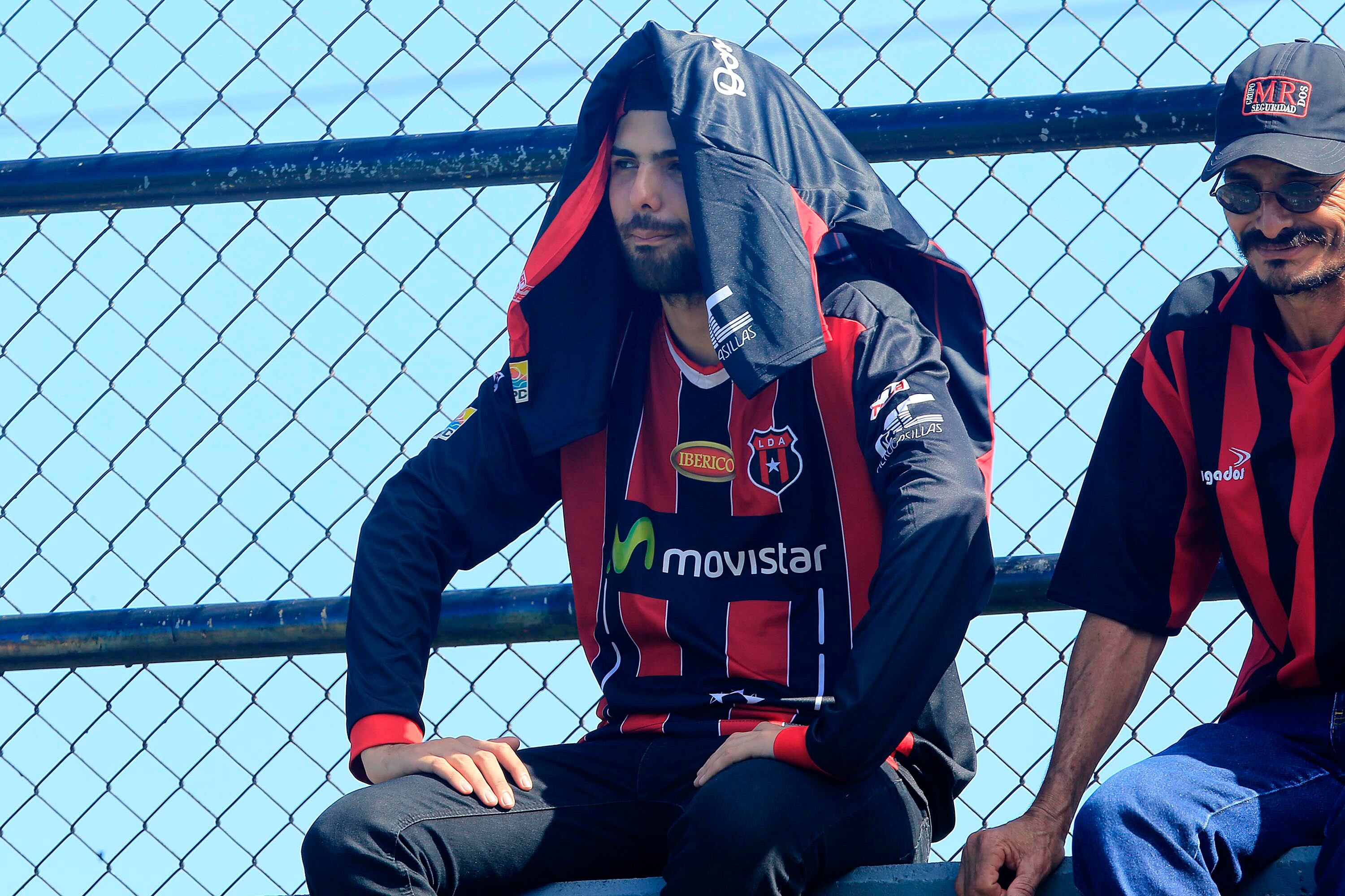 Mientras en la cancha la Liga sudaba la gota gorda y era dominada, su técnico, bien vestido con camisa manga larga enrollada a los codos y pantalón de vestir, solo se preocupaba por el calor que hacía en la cancha sintética del Juan Gobán.