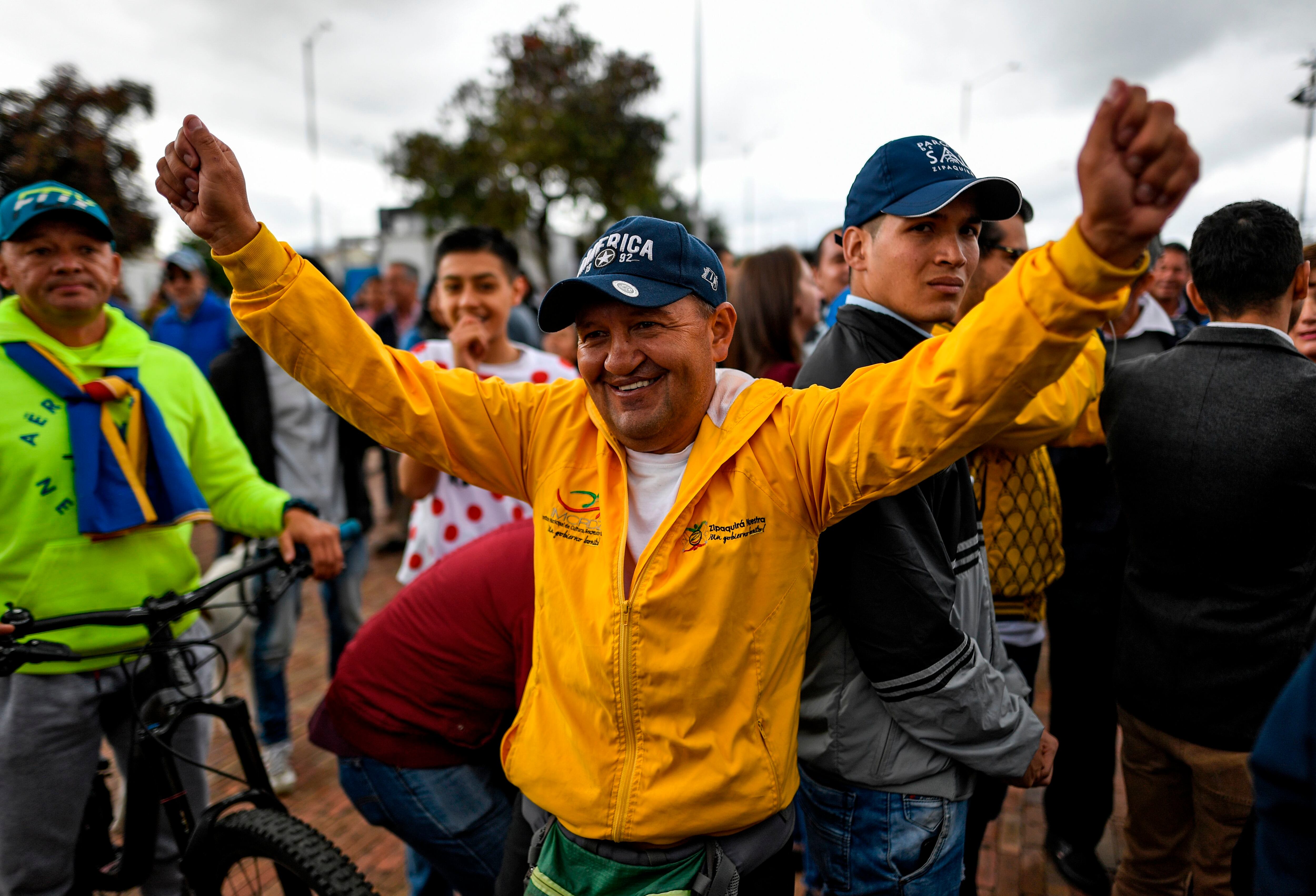 Unas 500 personas resistieron el frío de la mañana, en esta localidad cercana a Bogotá, para seguir, a través de una pantalla gigante, la penúltima etapa del Tour que consagró a Bernal como el hombre más joven en ganar la carrera desde 1935.