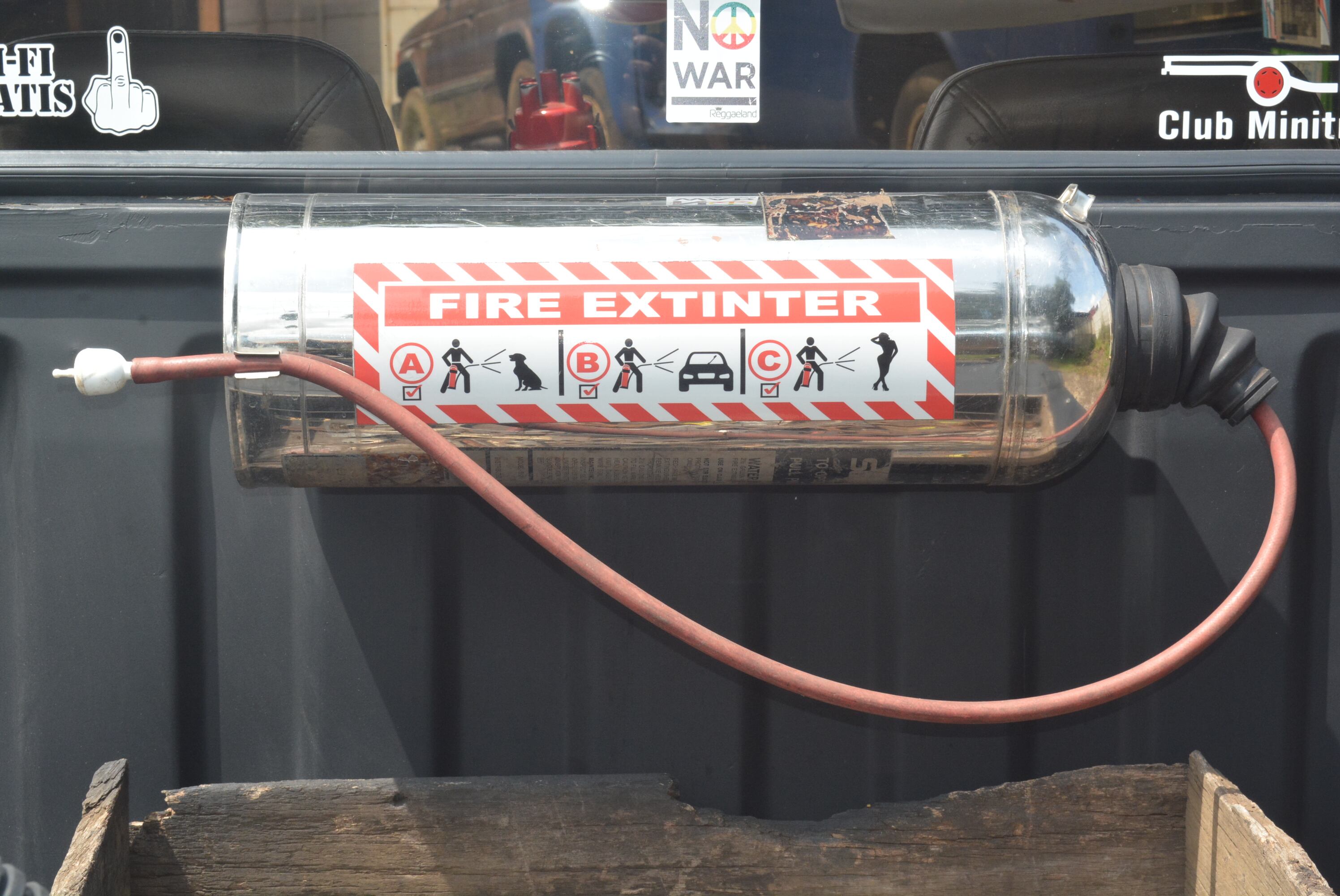 Los halógenos, por ejemplo, debes de ser uno sólo, o dos diferentes para que no se vea que pudo conseguir los dos, y así con todo. También tiene un extintor en el vidrio trasero, siempre cuidando el detalle de lo curioso.