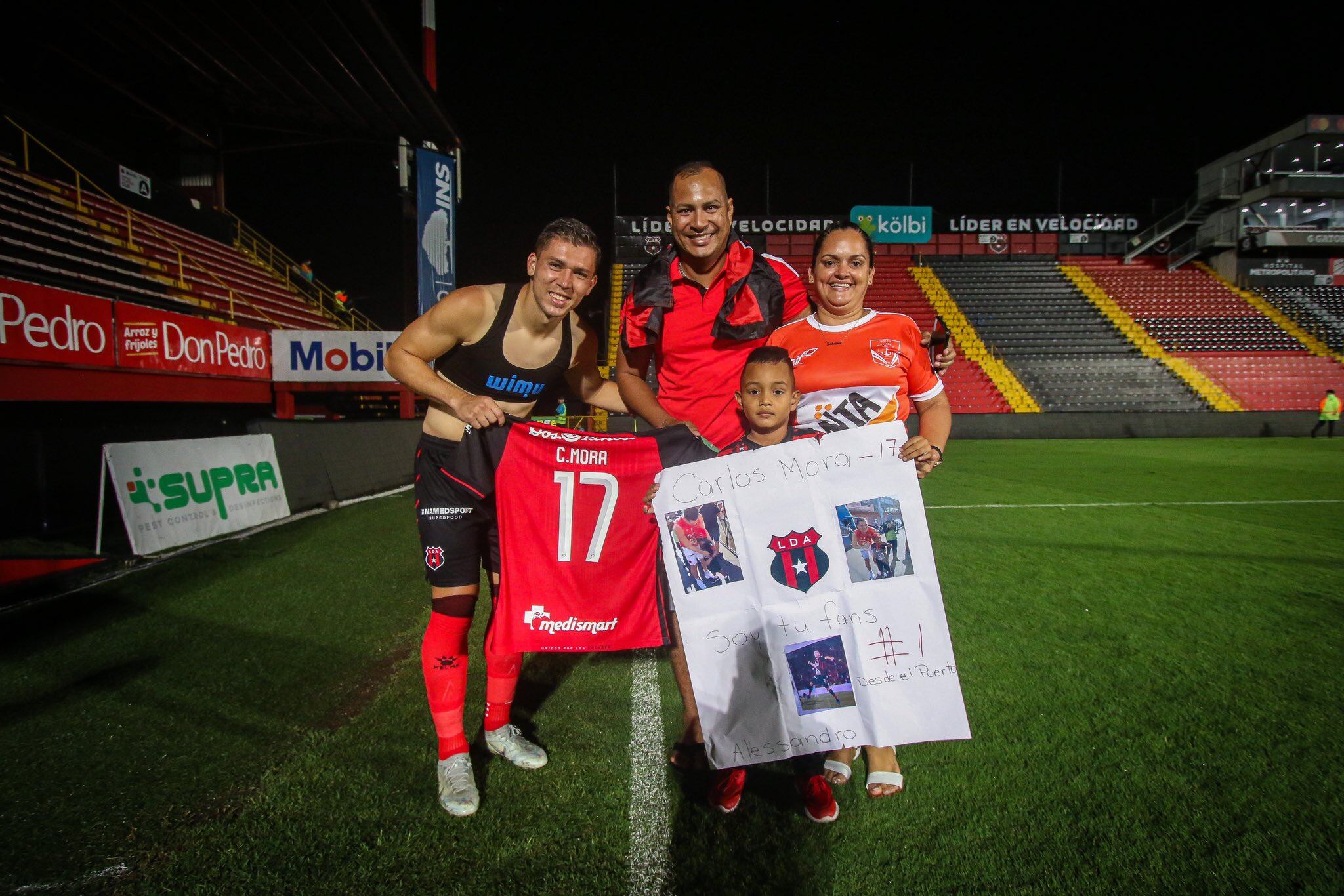 Carlos Mora, extremo de Alajuelense, se lució este domingo por todo lado, primero se jaló un golazo que ha dado muchísimo de qué hablar por su riqueza técnica, contó que será papá en la celebración y cerró la noche con un detallazo para un aficionado que nunca olvidará.
