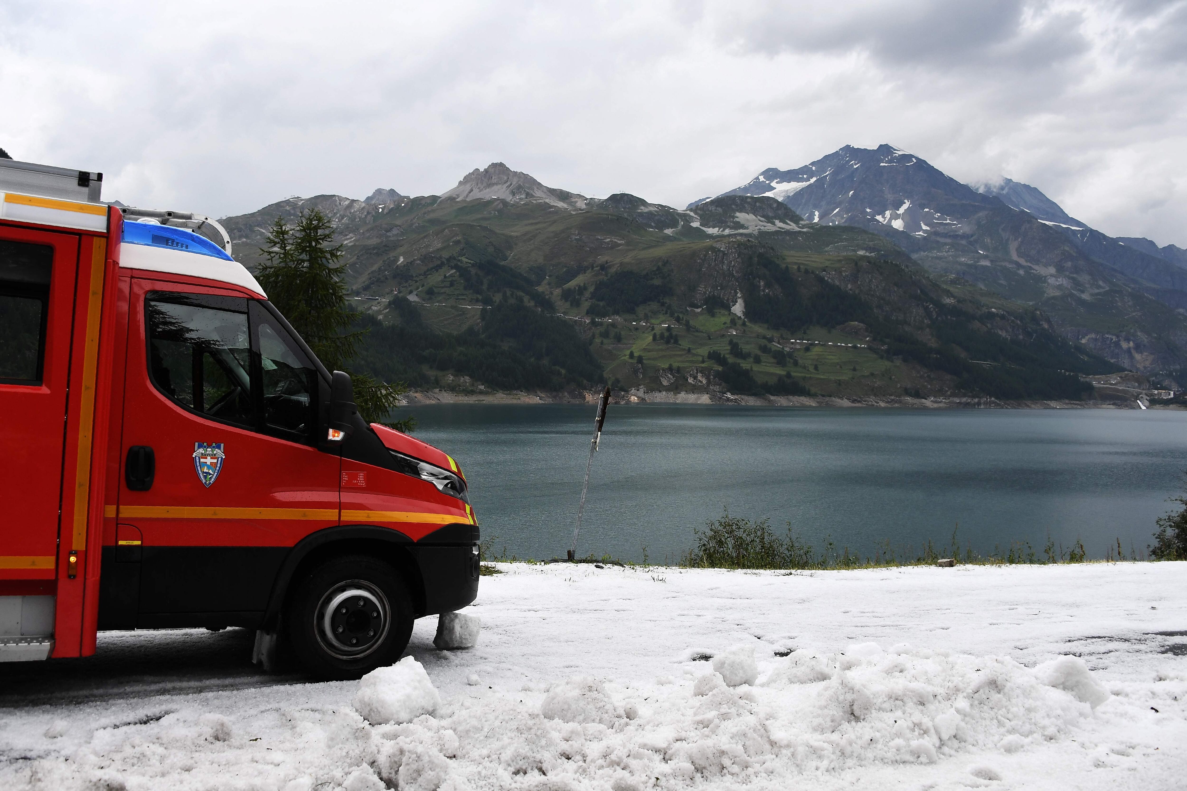 En el valle, una repentina granizada hizo los caminos demasiado peligrosos, lo que llevó a los organizadores a parar la etapa.