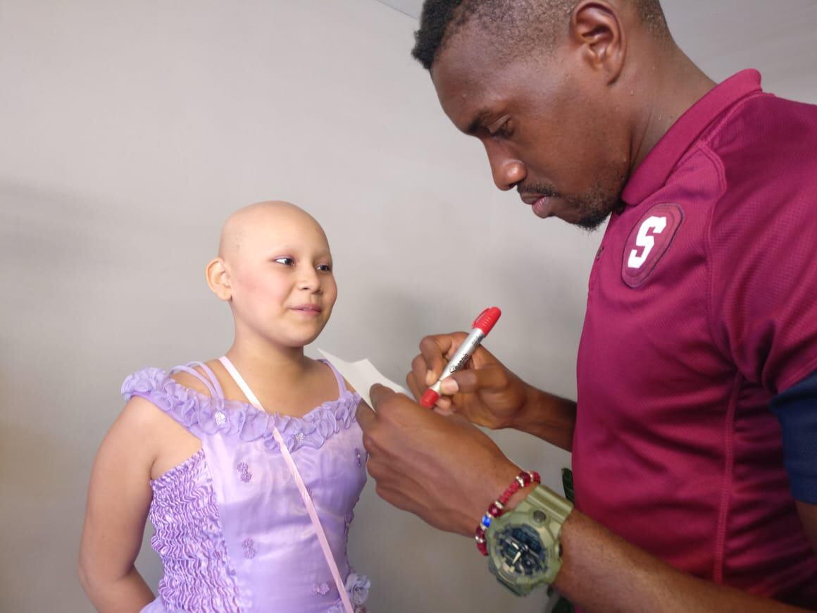 Este martes desde las oficinas de la Asociación Lucha contra el Cáncer Infantil en San José, Kerly Fonseca Gutiérrez, una niña de once años, aprovechó que se encontró con el limonense para comentarle qué haría ella para su equipo sea campeón.