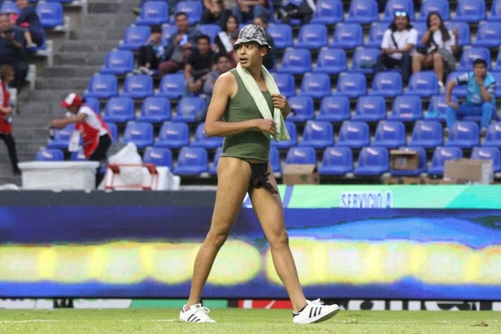 Una persona disfrazada del popular personaje bajó a la cancha y se paseó de lo más tranquilo por el terreno de juego durante el duelo entre Puebla y Pachuca.