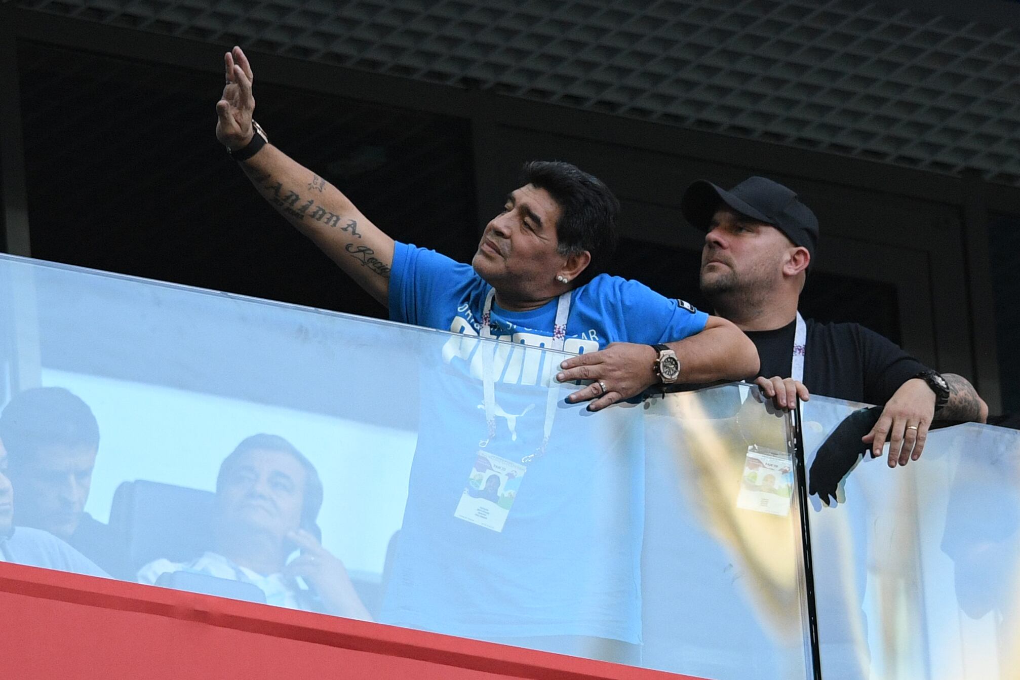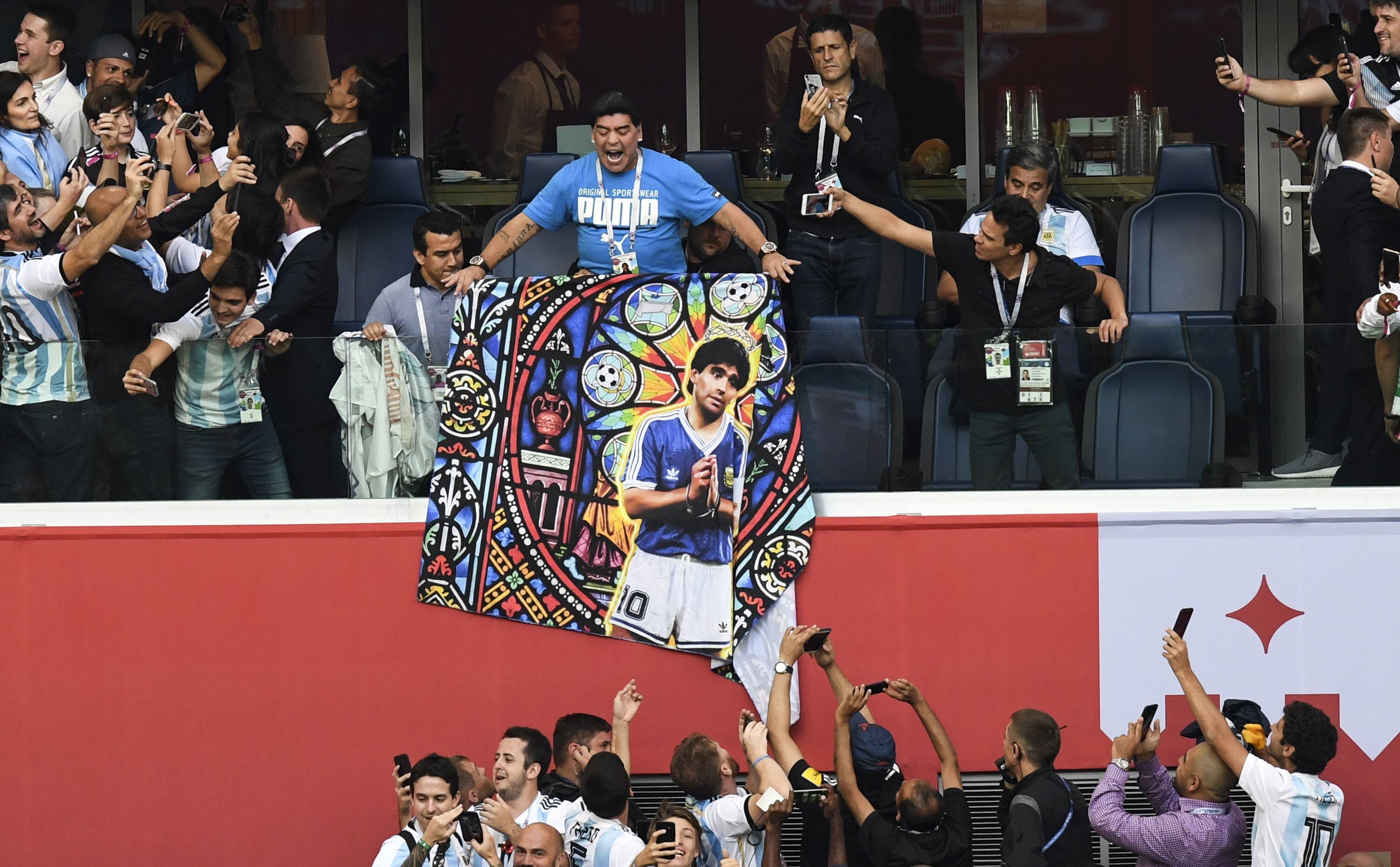 En los partidos de la selección albiceleste ya se hizo tradición ver el show de Diego Armando Maradona en las gradas del estadio. En el duelo Argentina - Nigeria no fue la excepción.
