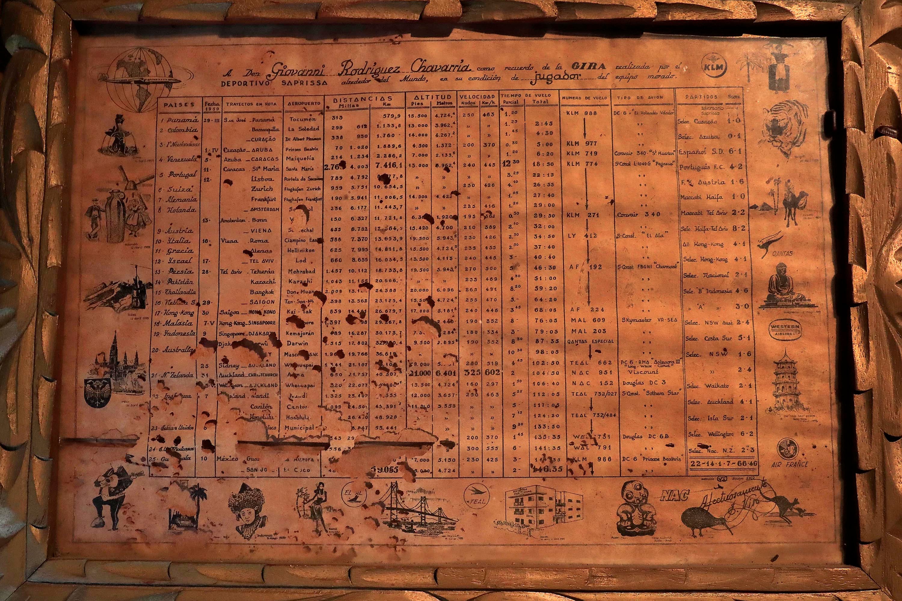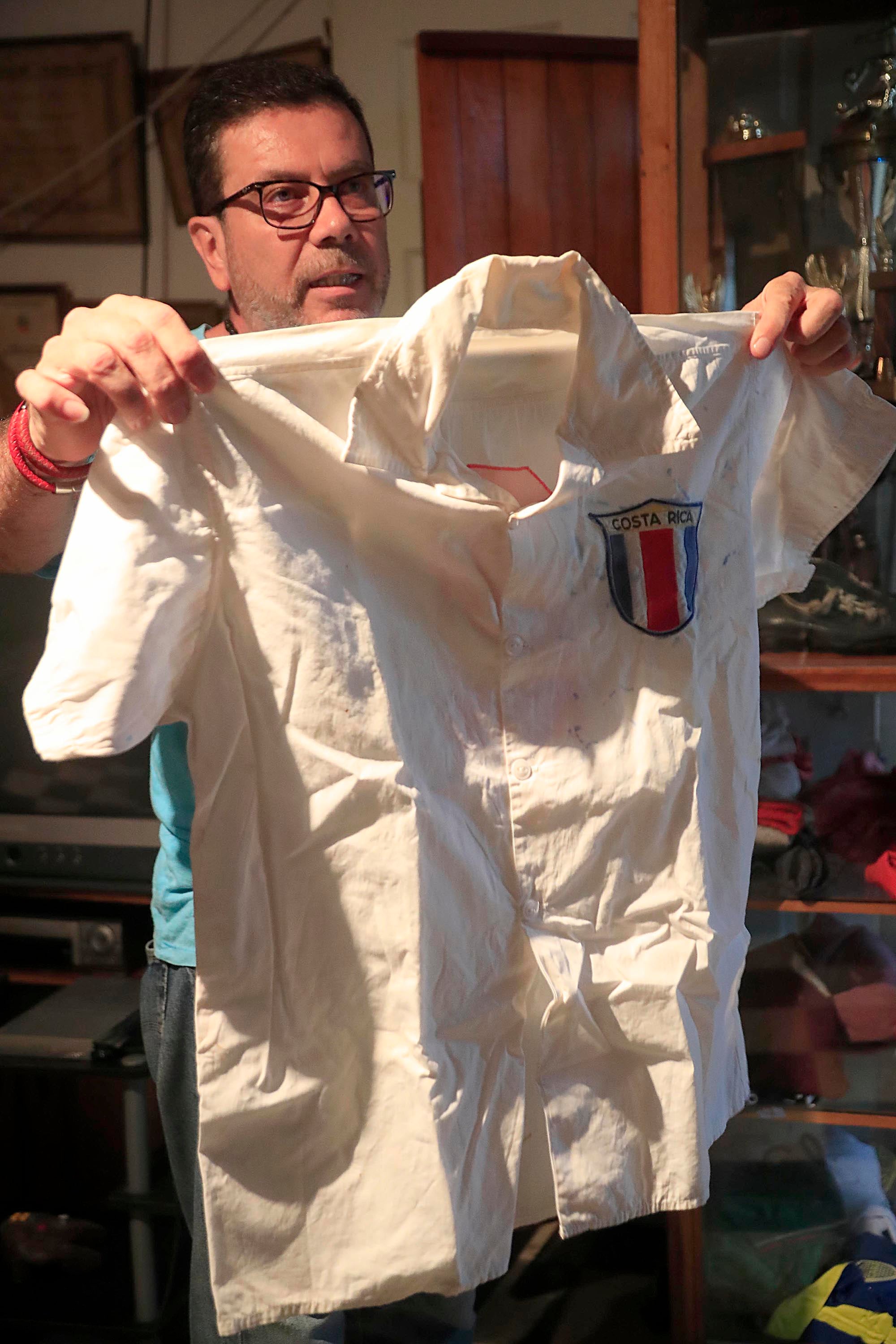 Además enmarcó el saco que usó cuando le dio la vuelta al mundo con Saprissa. Esa travesía la iniciaron en marzo de 1959, cuando el Monstruo era dirigido por el español Eduardo Viso Abella y su hijo recuerda una anécdota que sacó de sus casillas a su tata.
