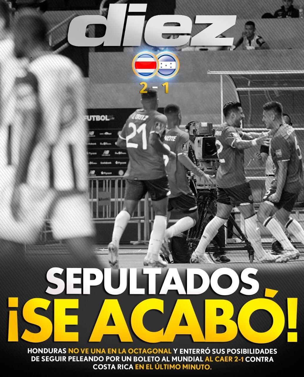 “Honduras cae ante Costa Rica con gol in extremis y renuncia a la esperanza de clasificación a Catar”. “En La Sabana quedó sepultada ilusión mundialista”. “Costa Rica nos ‘Quioto’ la gana de ir a Catar 2022′', fueron algunos de los titulares.