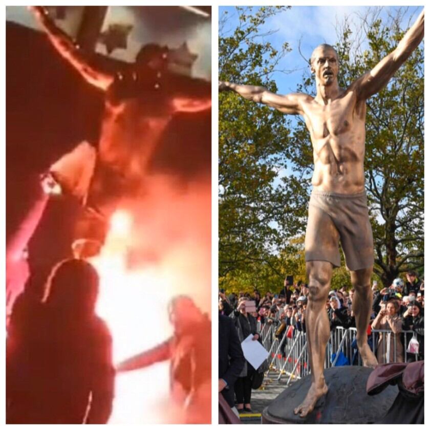 La estatua de la estrella del fútbol sueco Zlatan Ibrahimovic frente al estadio del Malmö, que fue despedazada en la madrugada de este domingo, fue desplazada a otro lugar, anunció el ayuntamiento de la ciudad sueca.