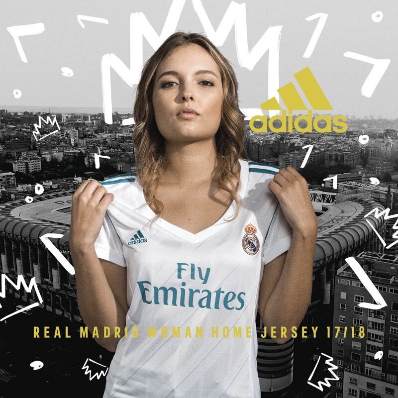 "En la primera equipación se ha buscado una camisa aún más blanca, por eso las tres bandas de Adidas solo están en los hombros, no recorren las mangas ni los laterales como en otros años. El color de las bandas de Adidas y del logo del patrocinador es el azul, un azul celeste inspirado en el cielo de la ciudad de Madrid", explicó la marca de las camisetas.