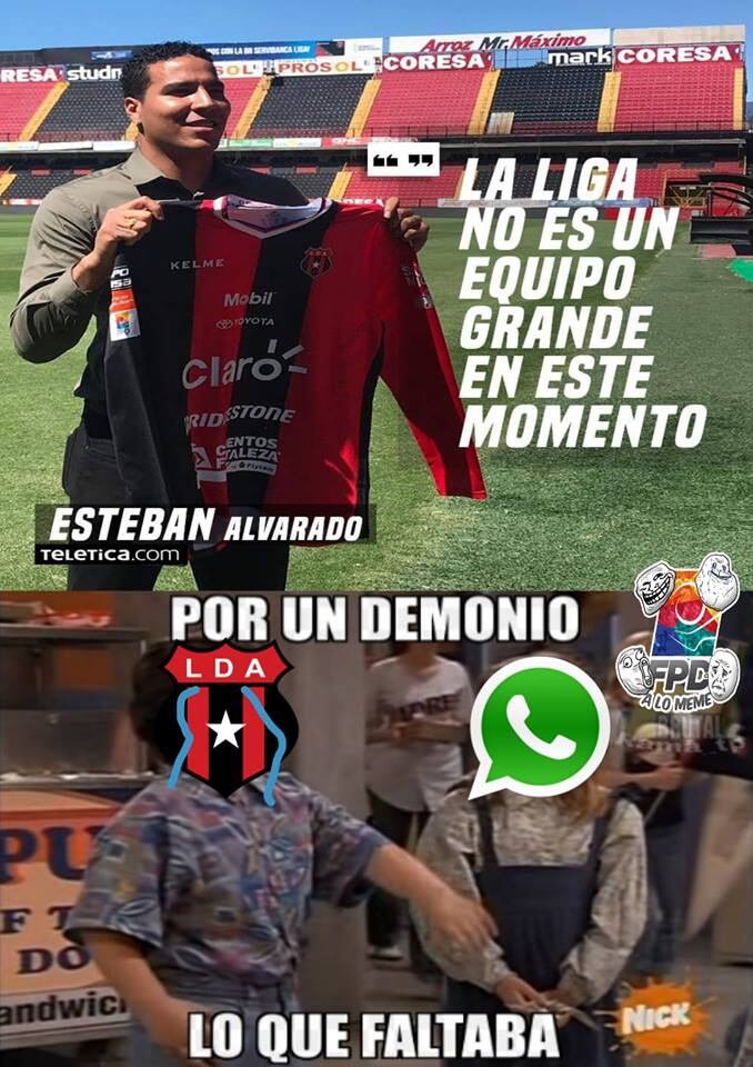 Según los aficionados, la Liga se está hundiendo por sus resultados deportivos y ahora por lo que salió diciendo Esteban Alvarado (dijo que Alajuelense no es un equipo grande) y con ello se vino la lluvia de memes que tiene a las institución como actor secundario.