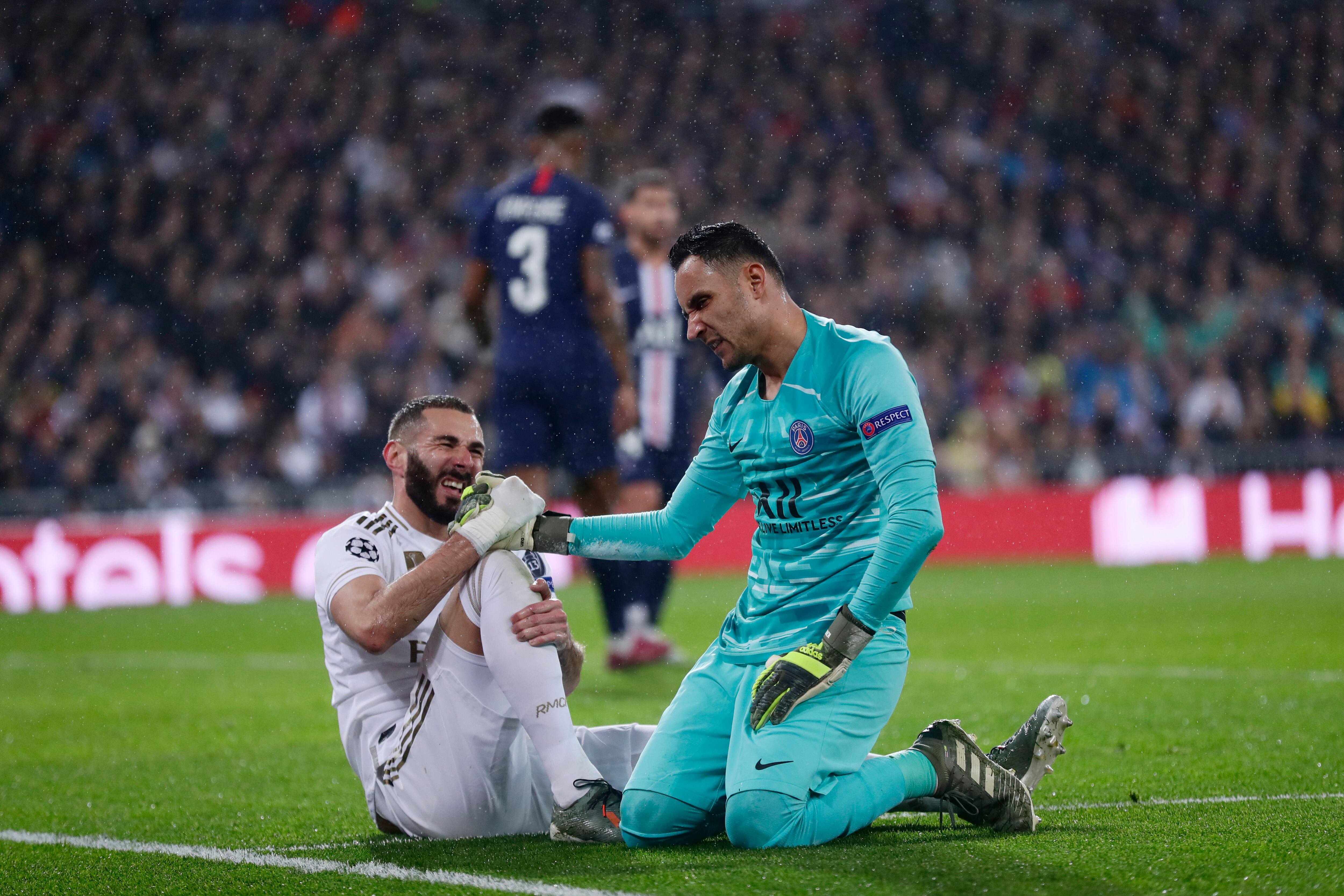Keylor Navas tuvo una noche mágica en su regreso a Madrid y compartió la alegría con Carlos Quirós, quien se dejó los guantes con los que el Halcón se lució durante el juego que el Paris Saint Germain le empató 2-2 al Real Madrid.