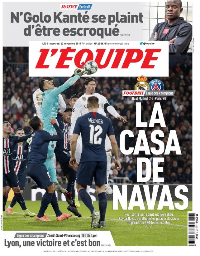 El periódico deportivo más importante de Francia, L’ Equipe, también destacó la gran labor del portero exmorado.