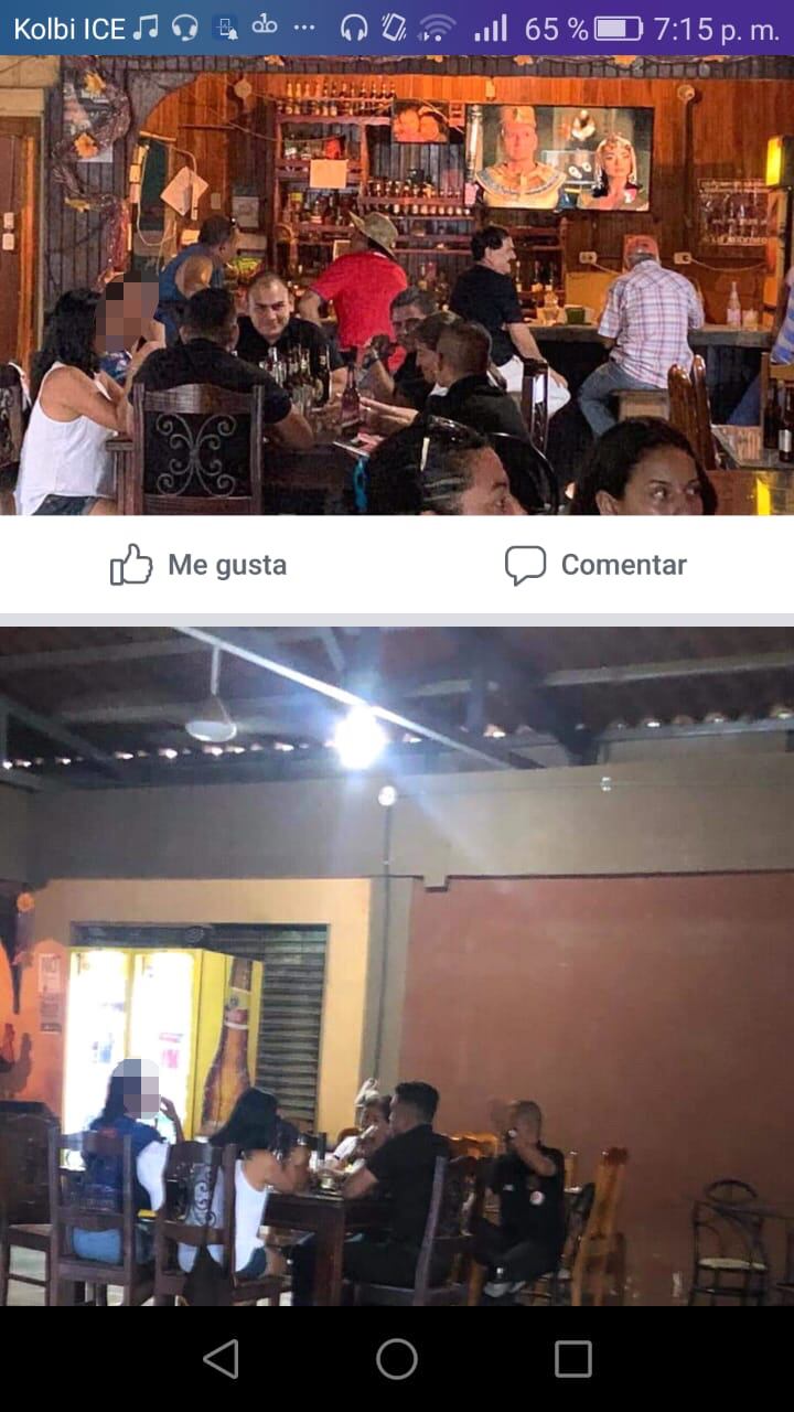 En las imágenes aparecen el central David Gómez, los líneas Leslie Macre y Mauricio Córdoba y el cuarto árbitro, Rigo Prendas. Salen sentados en una mesa en la que se ven varias botellas de cerveza y están acompañados por dos mujeres, una de ellas con una camiseta del club jicaraleño.