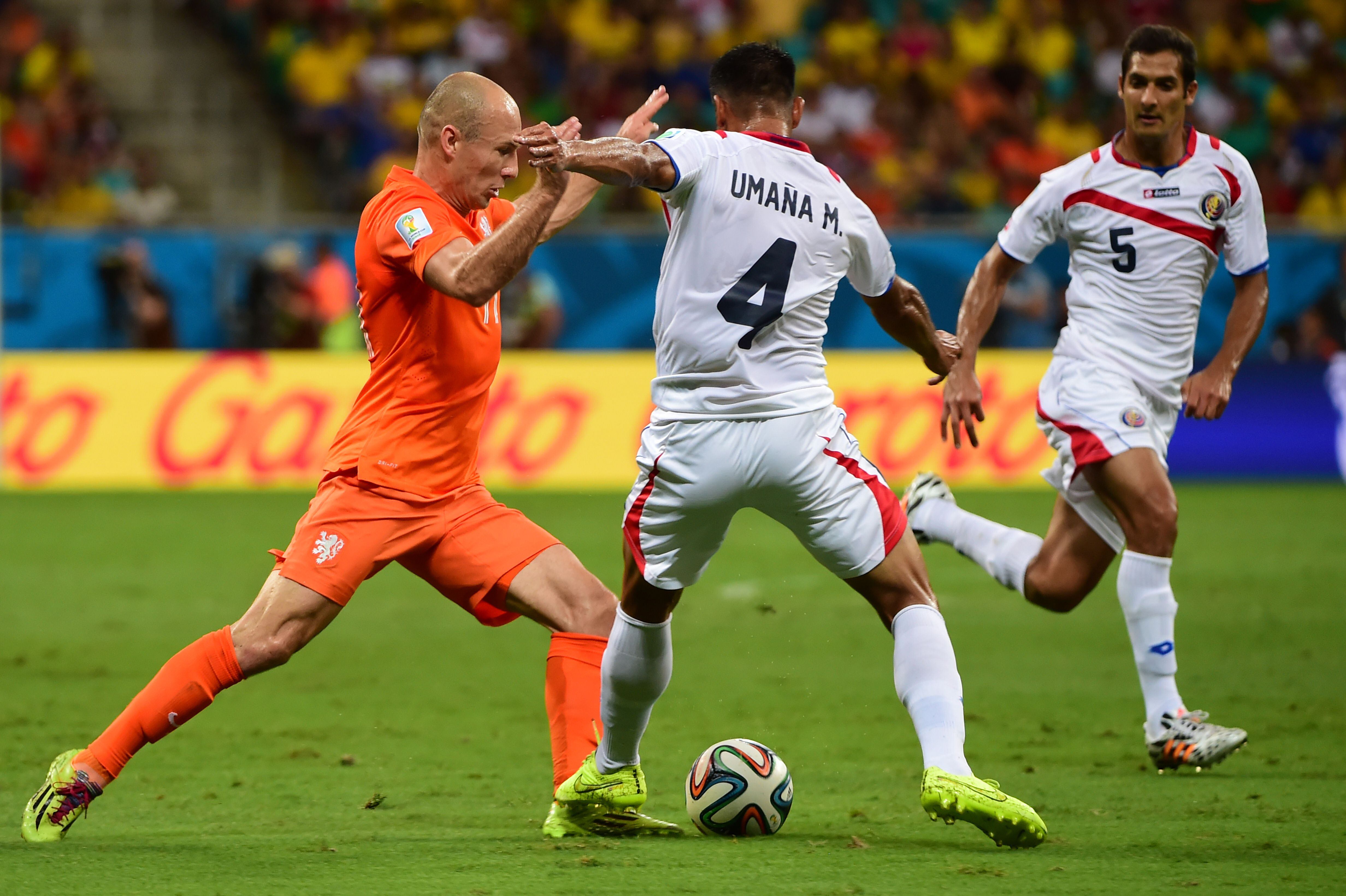 Vistiendo la camisa de la Naranja Mecánica, Robben jugó contra la Selección Nacional de Costa Rica en los cuartos de final del Mundial de Brasil 2014, el 5 de julio de ese año. En esta Copa del Mundo, los neerlandeses consiguieron el tercer lugar.
