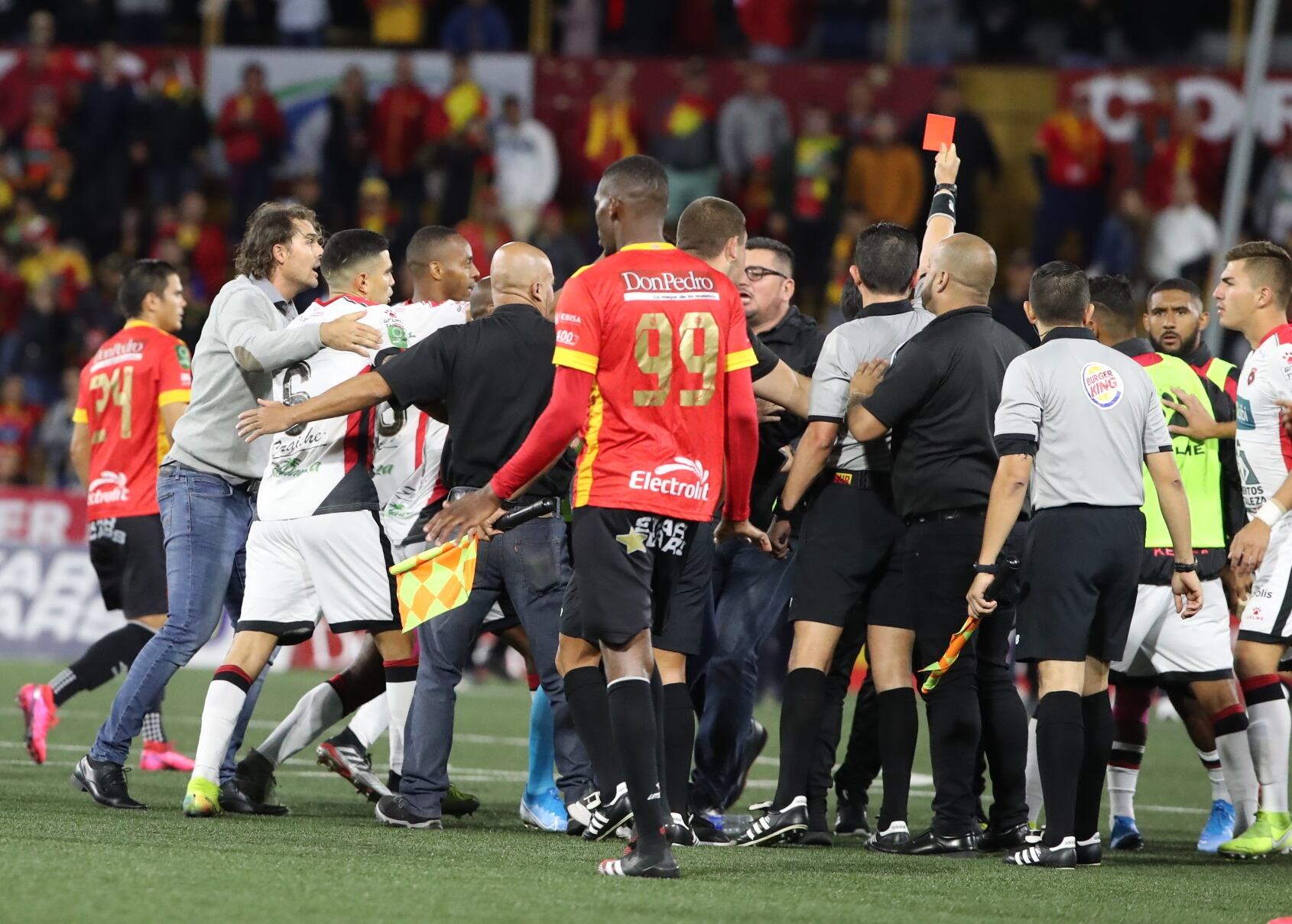 La altanería de muchos de los cuerpos arbitrales, se equivocan, les reclaman, entonces los expulsan, por favor, cuando uno se equivoca, uno tiene que aceptar que se equivoca. Esto es un desastre, dicen los jugadores que la falta la pita sobre Junior Díaz, pero entonces cuando se da cuenta que se equivocó, dice que el penal es de McDonald, ni sabe lo que está diciendo, nos sacan dos puntos de la bolsa, claro que deben estar molestos (los jugadores).