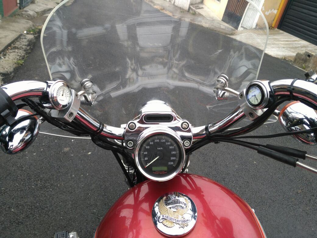 Es un chuzo porque representa la división 2003-2004 de la Harley, esta fue de las primeras 2004 ya que las fabricadas un año antes no traían compensador en el motor como lo tienen este modelo. Estas motos tienen un sonido característico conocido como “el caballito”. Es enfriada por agua y no por aire. Un detalle que tiene es la tapa del tanque que está enchapada en oro porque así lo había querido la antigua dueña. Toda Harley usa faja, nunca cadena.